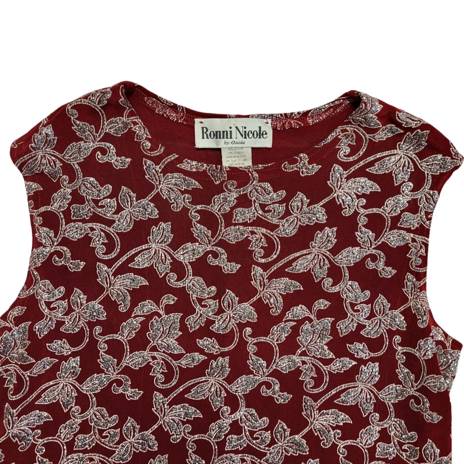 Ronnie Nicole Vintage 90's Red Sleeveless Leaf Print Glitter Top Womens UK M