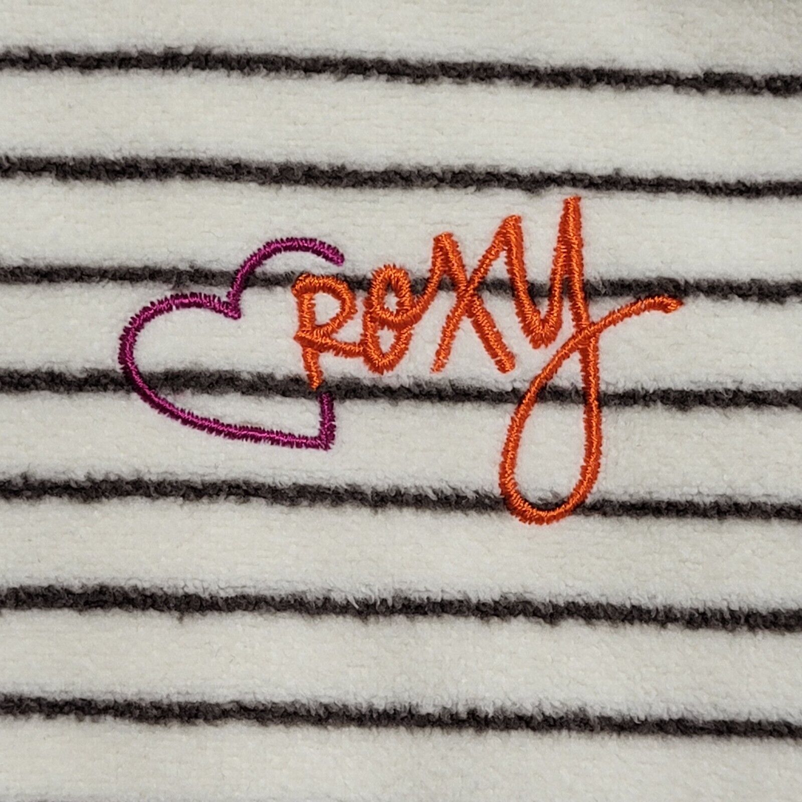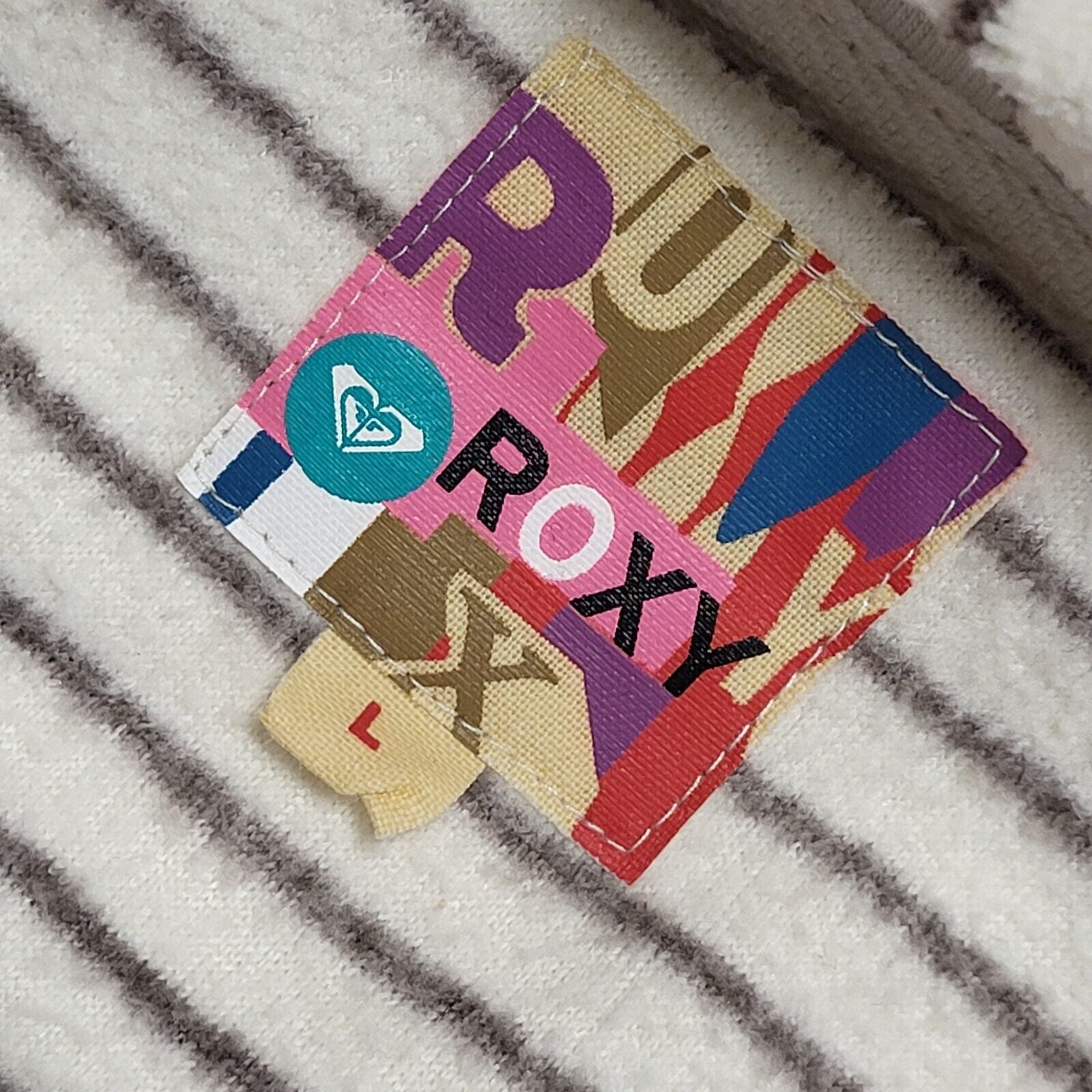 Roxy Vintage Y2K Hooded Fleece Beige Striped Full Zip Womens UK Large.