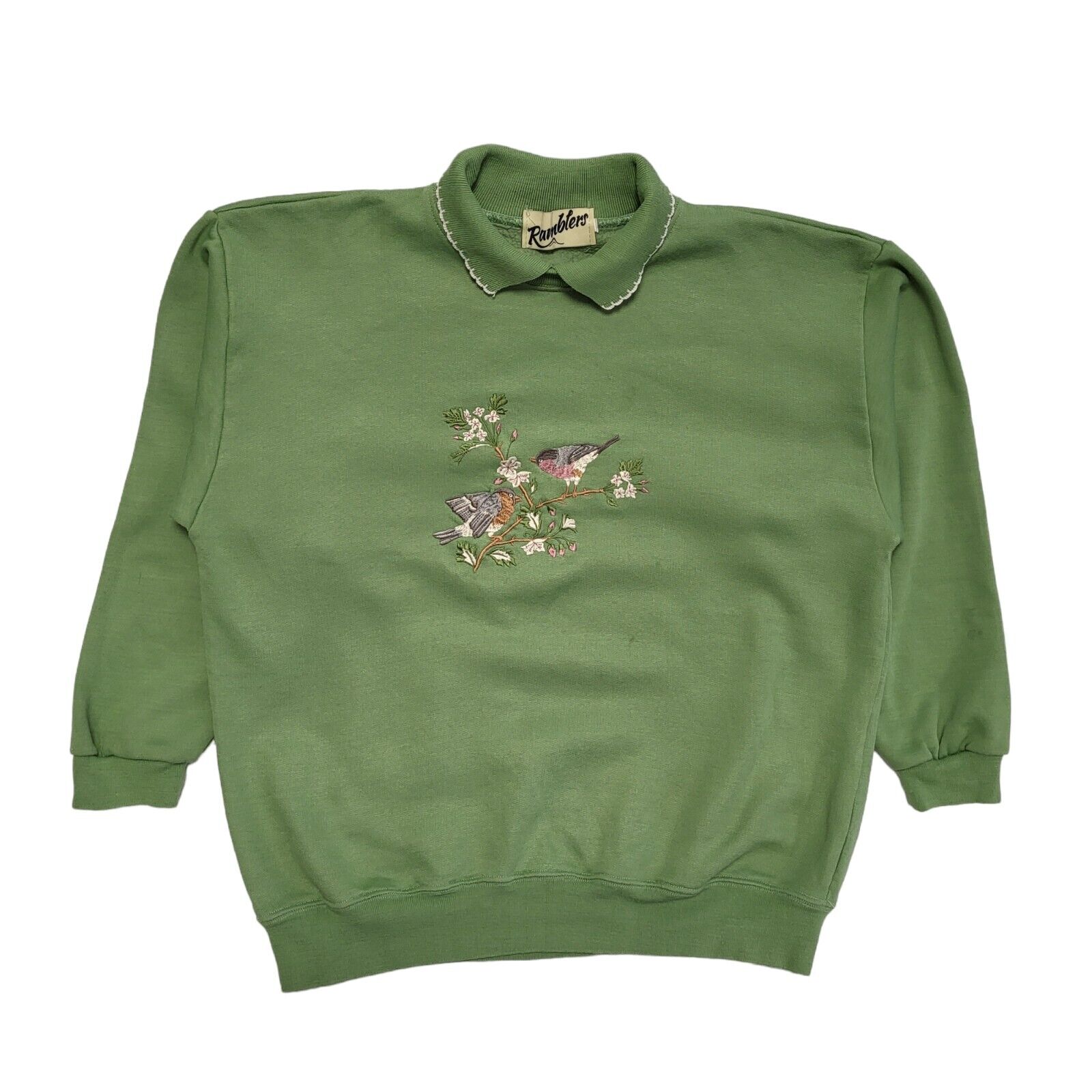 Rumblers Vintage 80s Green Bird Collared Sweatshirt Womens UK Size L