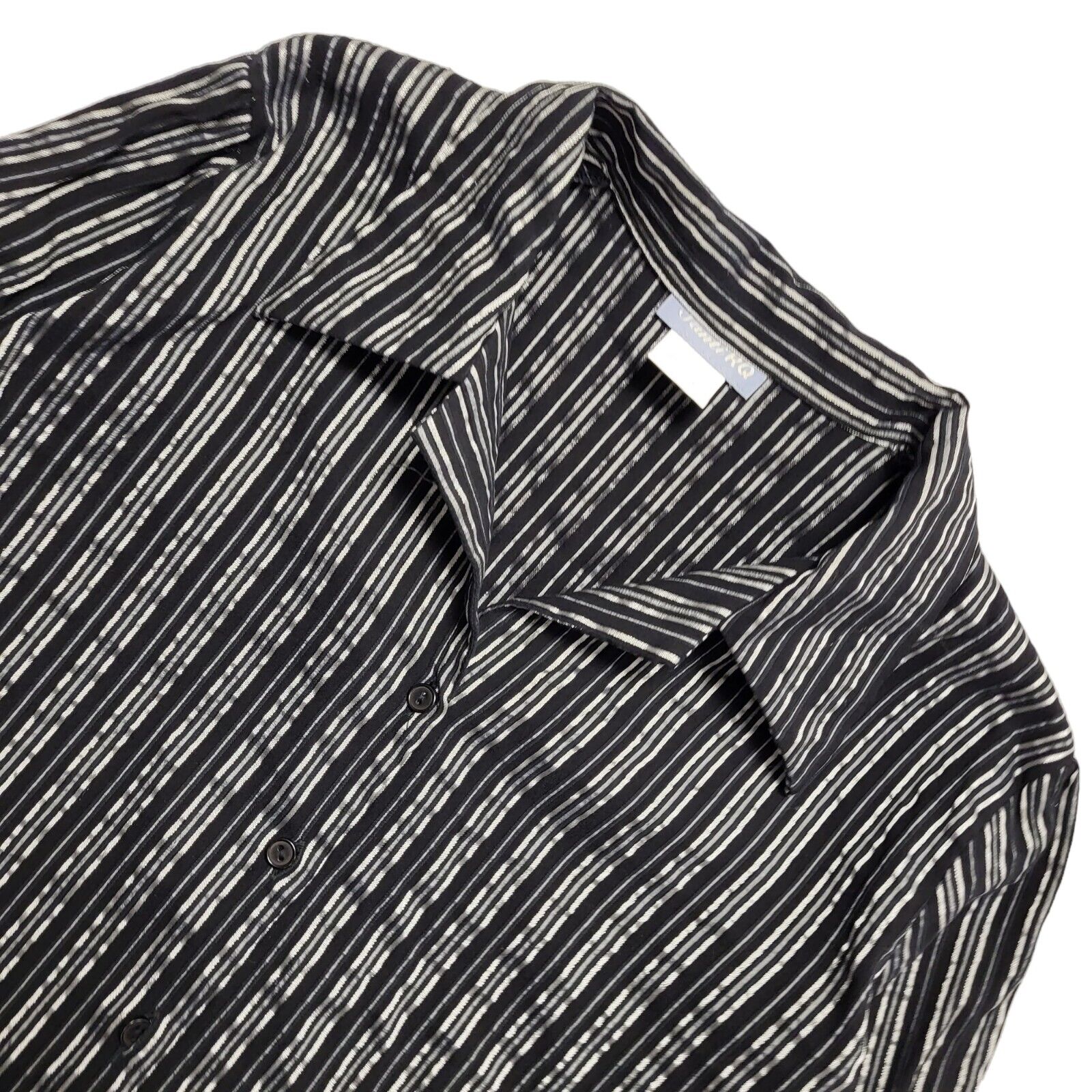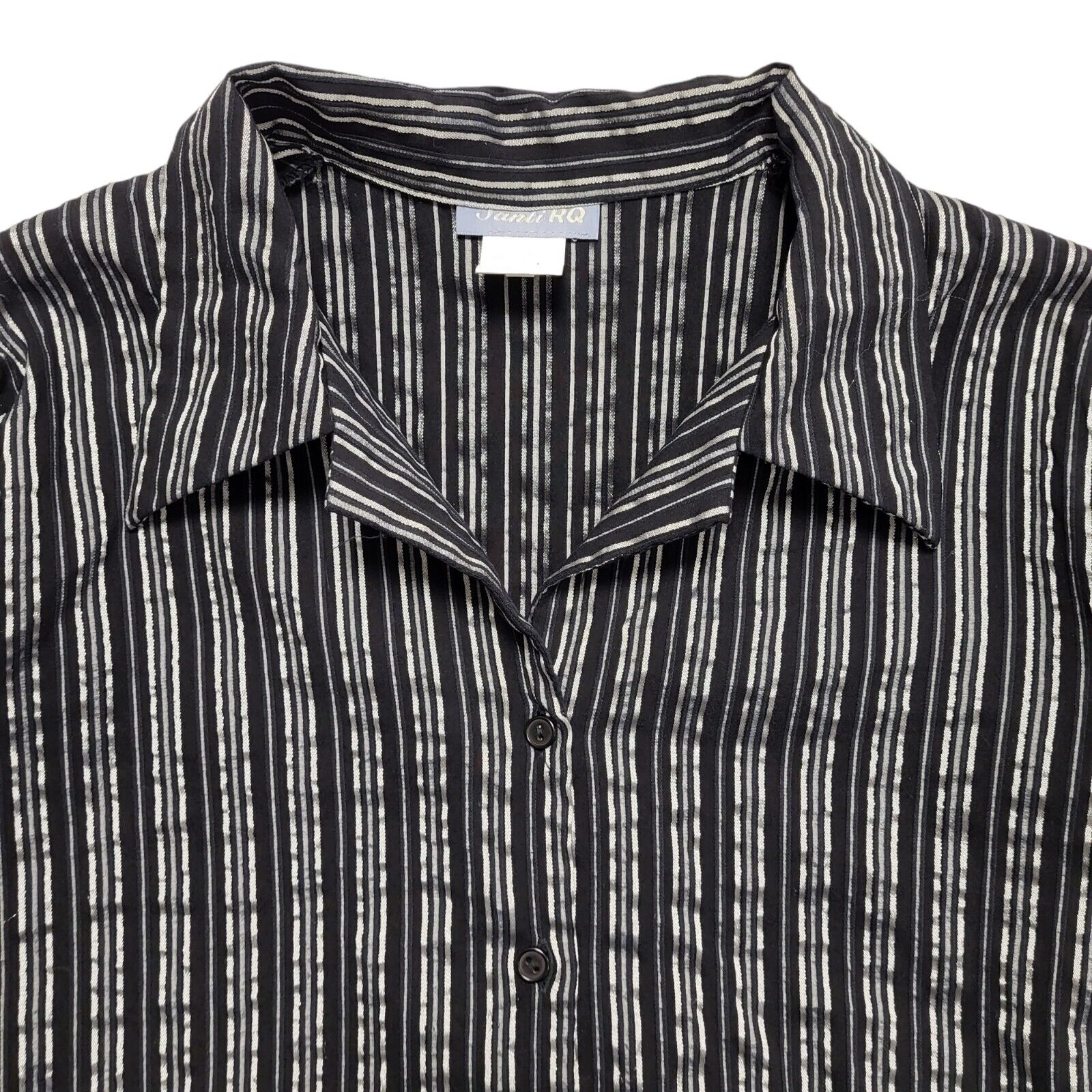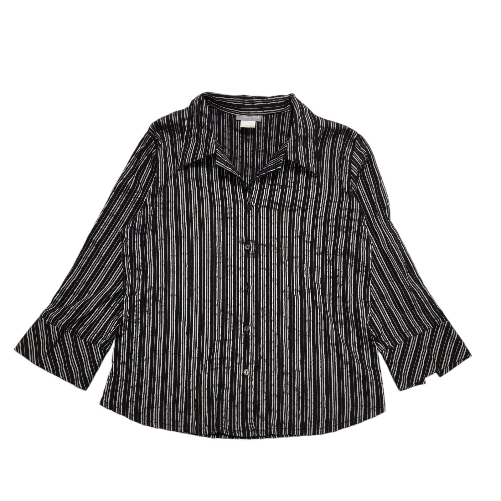 Santi RQ Vintage 80's Black & Silver Striped 3/4 Sleeve Shirt Womens UK 18