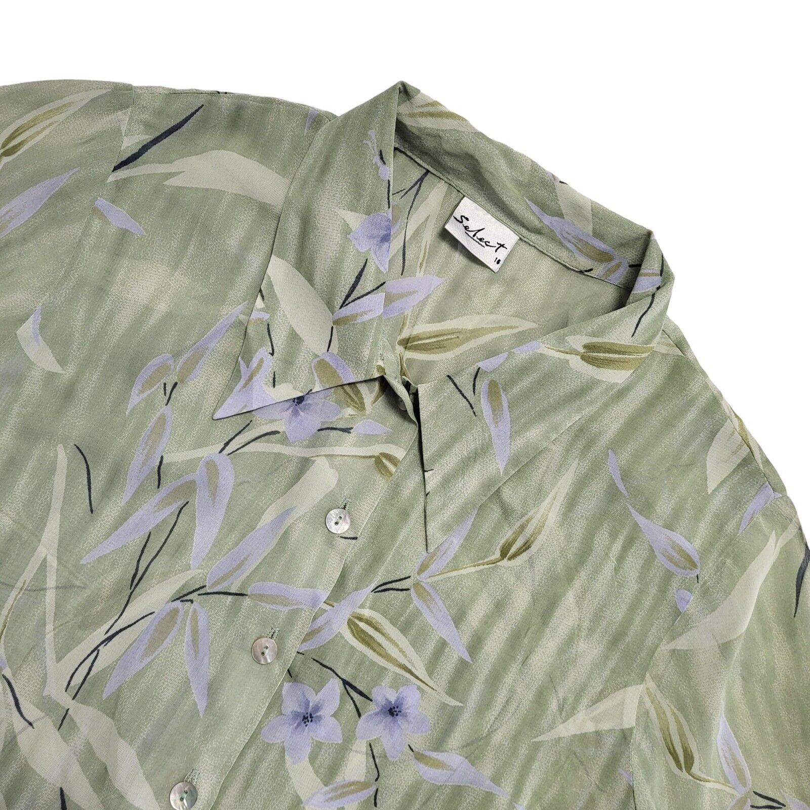 Select 90's Green & Blue Floral Short Sleeve Blouse Womens UK Size 16