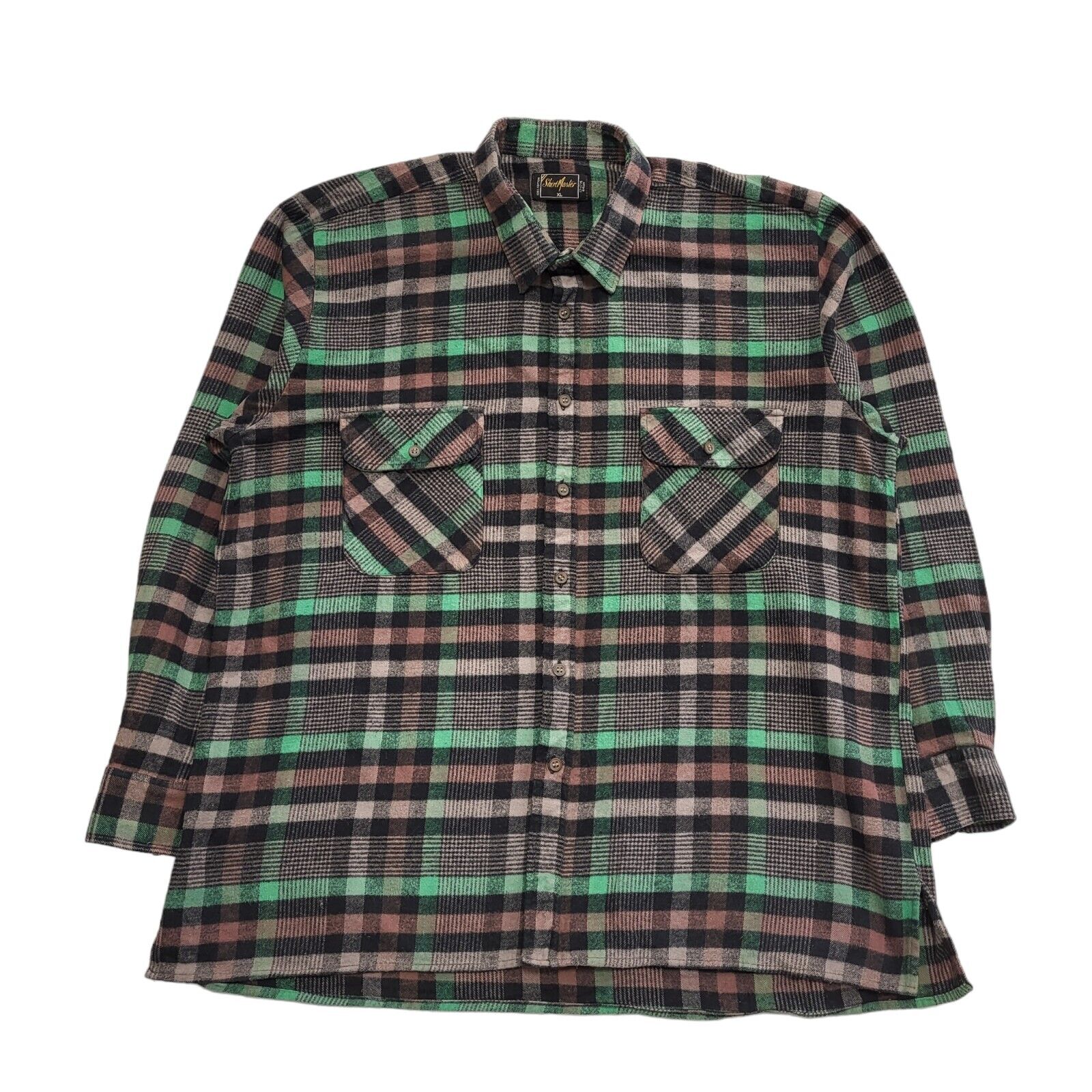 Shirt Master 90's Black & Green Check Long Sleeve Flannel Shirt Uk Men's UK XL.
