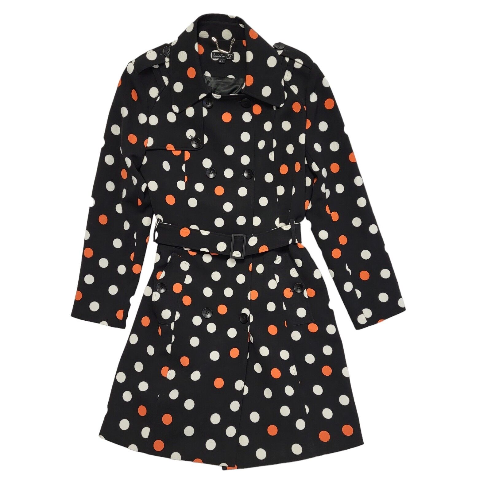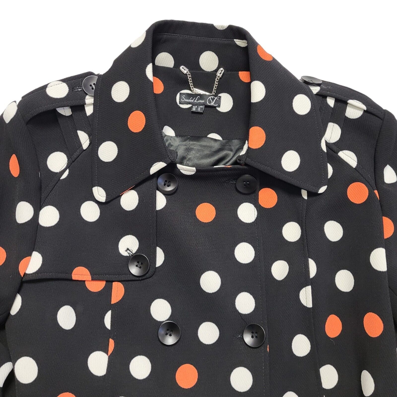 Smashed Lemon Black White Polka Dot Belted Coat Uk Women's Size 14