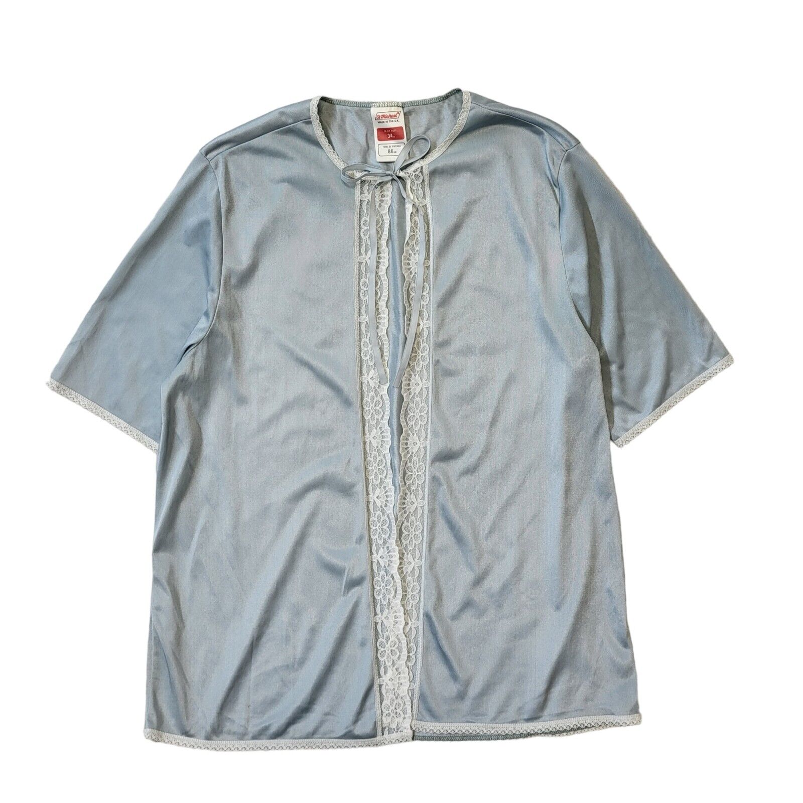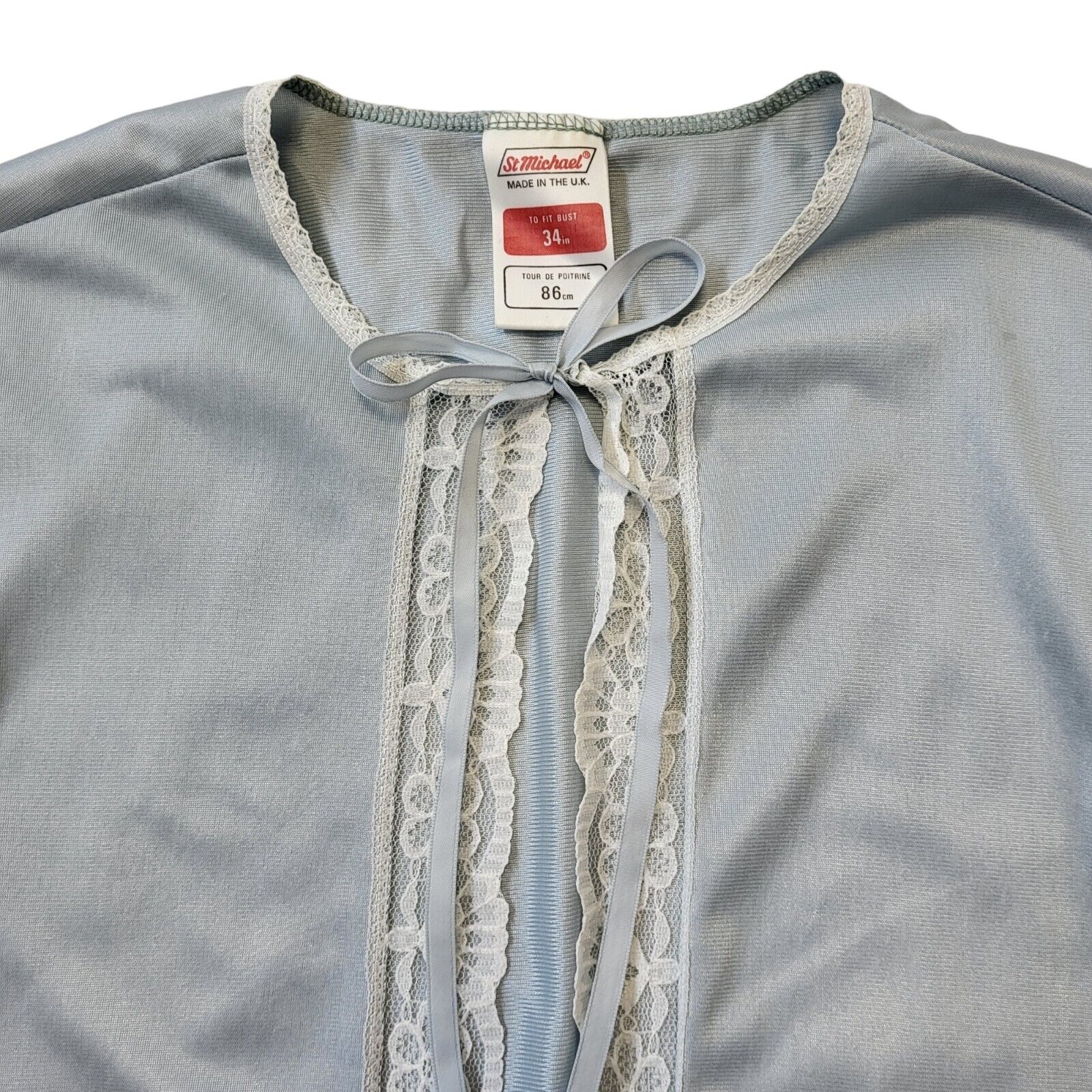 St Michael M&S 70s Vintage Light Blue Short Sleeve Night Blouse Womens UK 6 EU34.