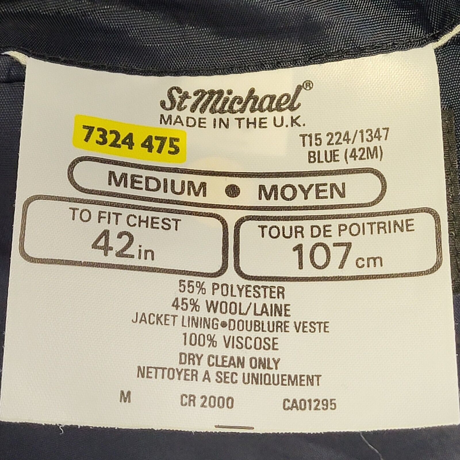 St Michael Vintage 70s Blue Striped Wool Blend Suit Jacket Uk Men's Size L 42"