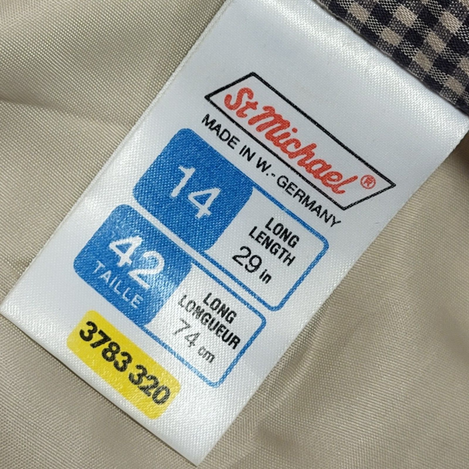 St Michael Vintage 80's Beige Check A-Line Skirt Uk Women's Size 14