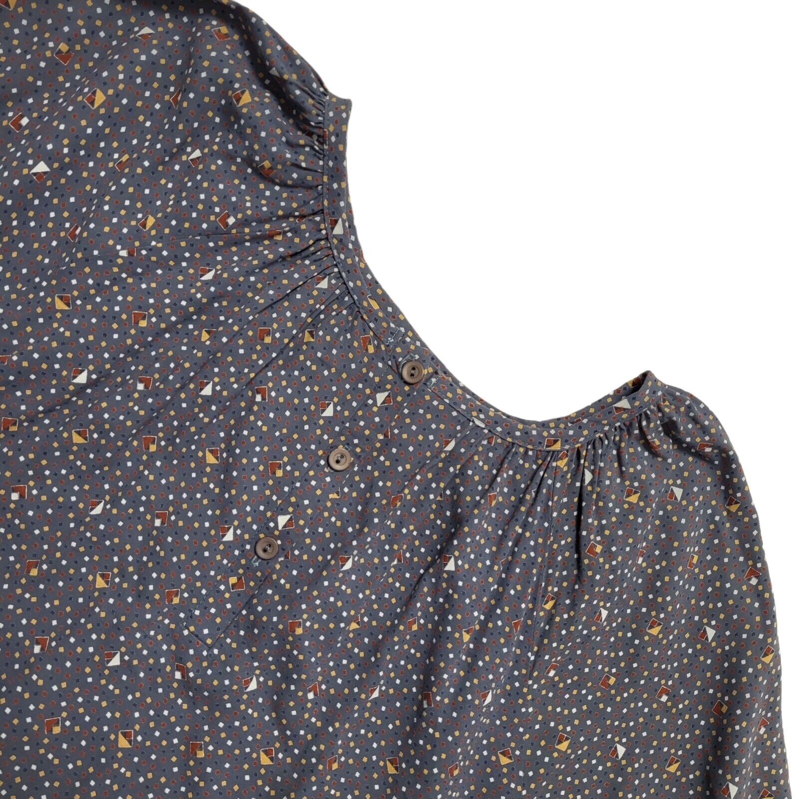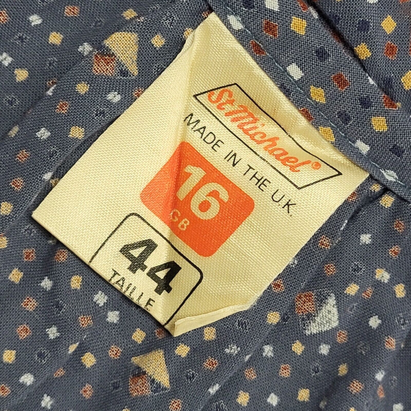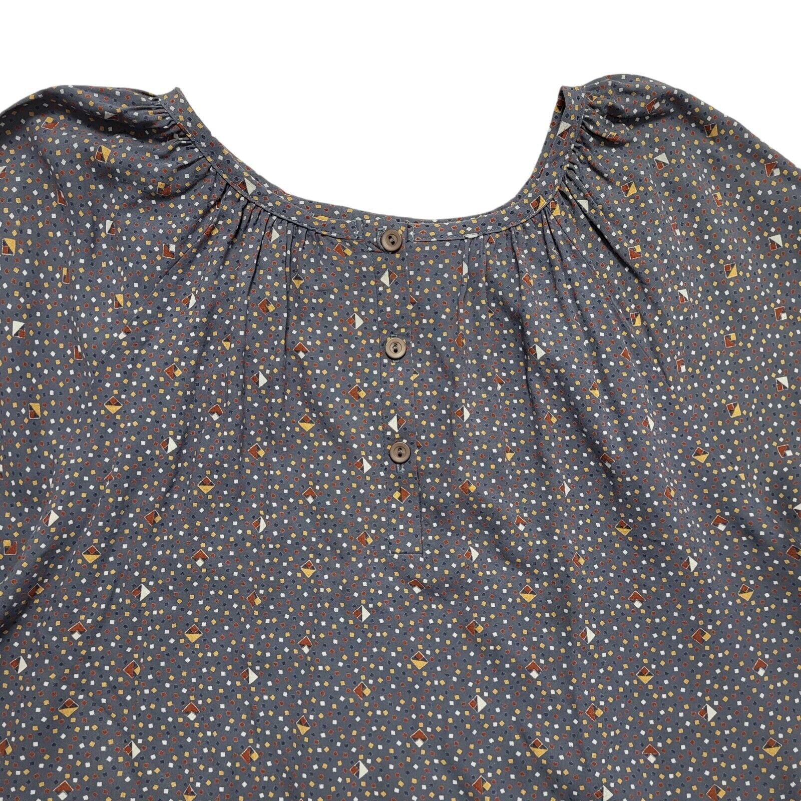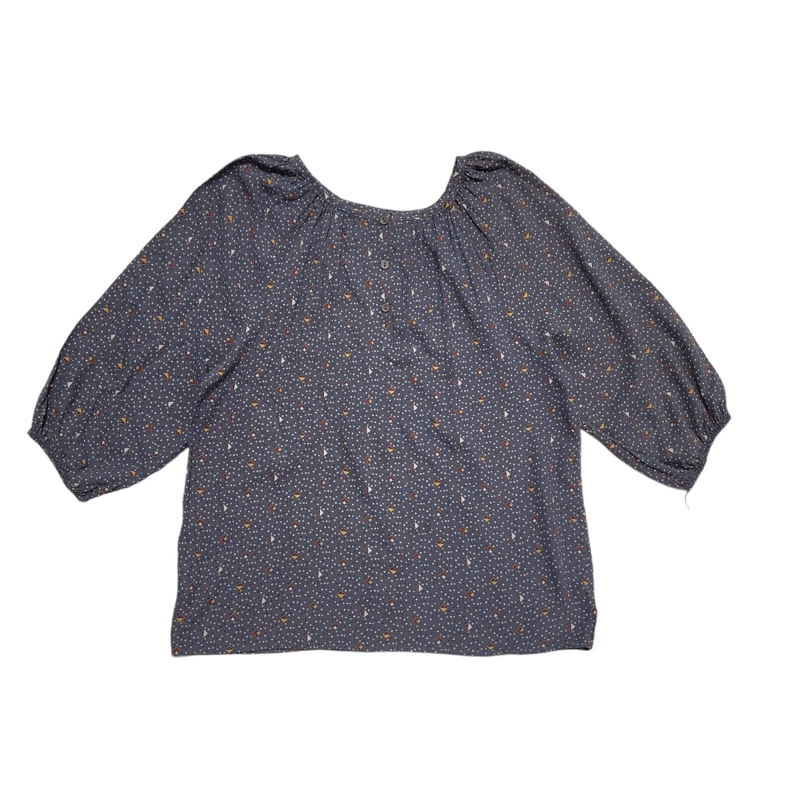 St Michael Vintage 80's Blue Abstract 3/4 Sleeve Blouse Uk Women's Size 16