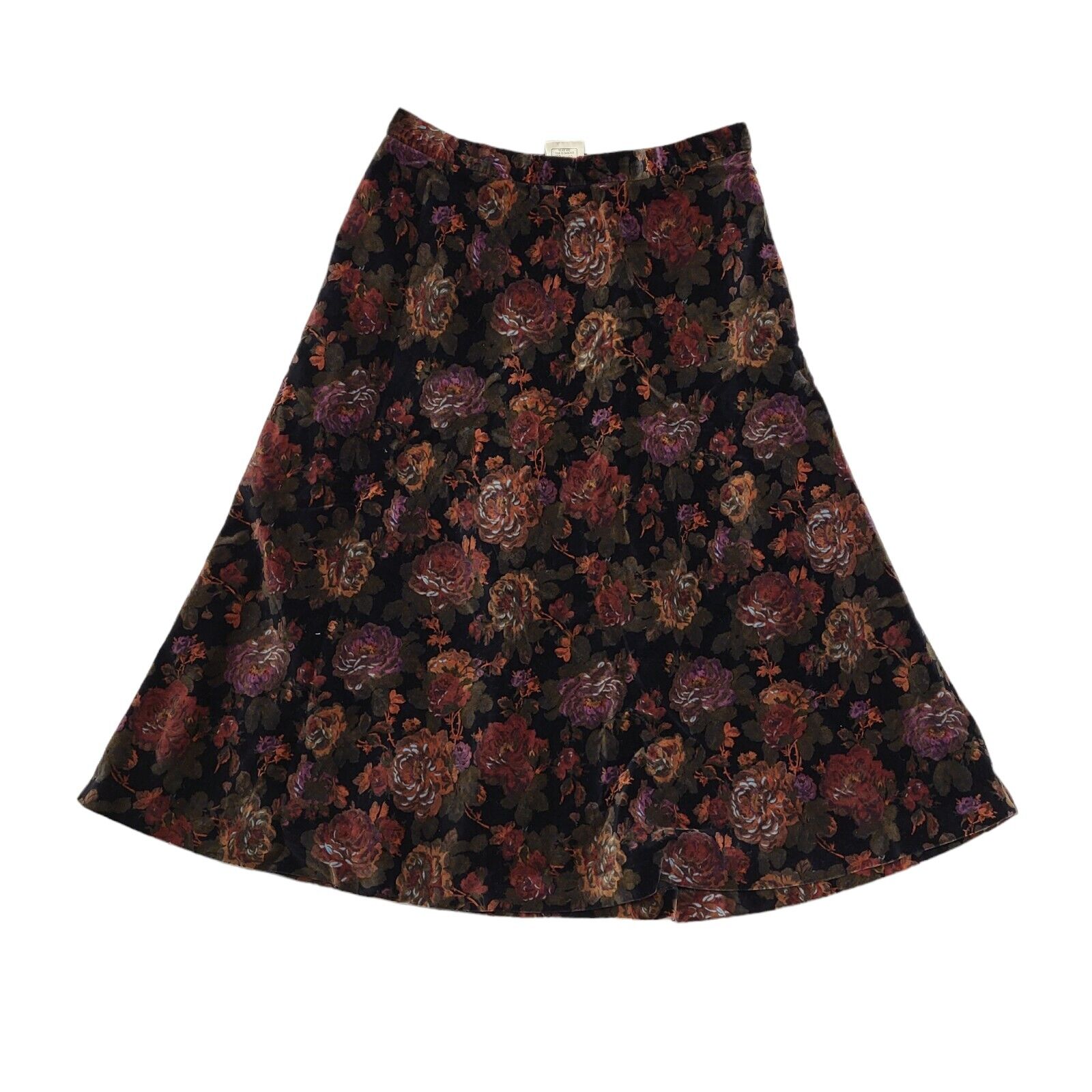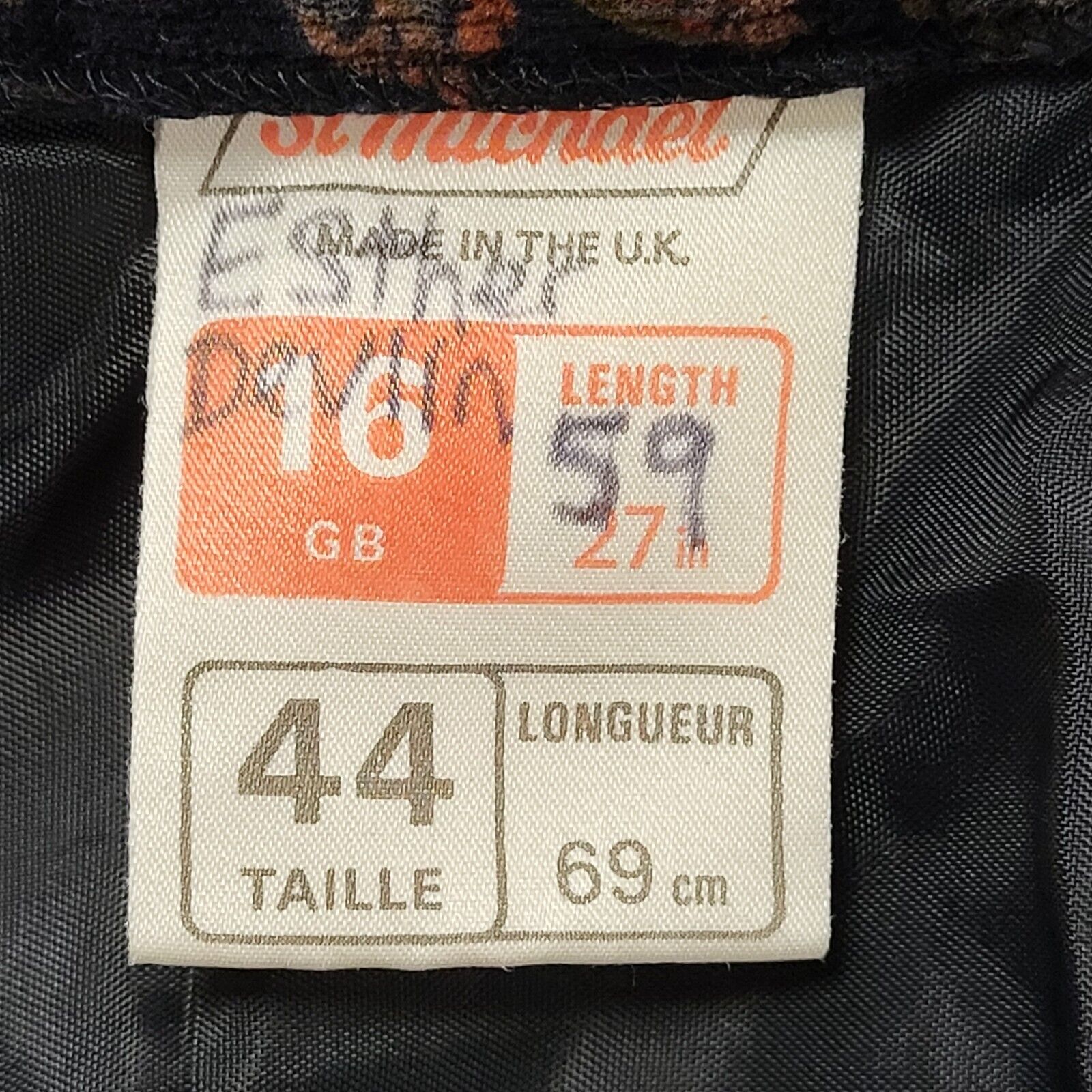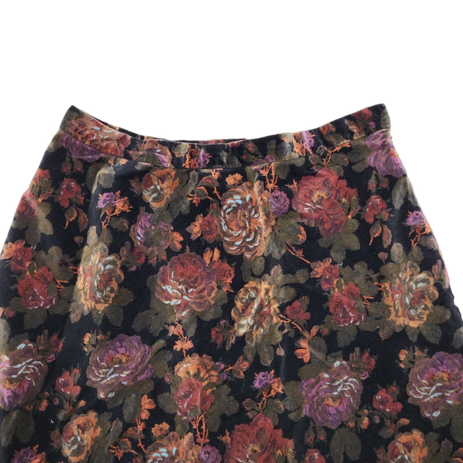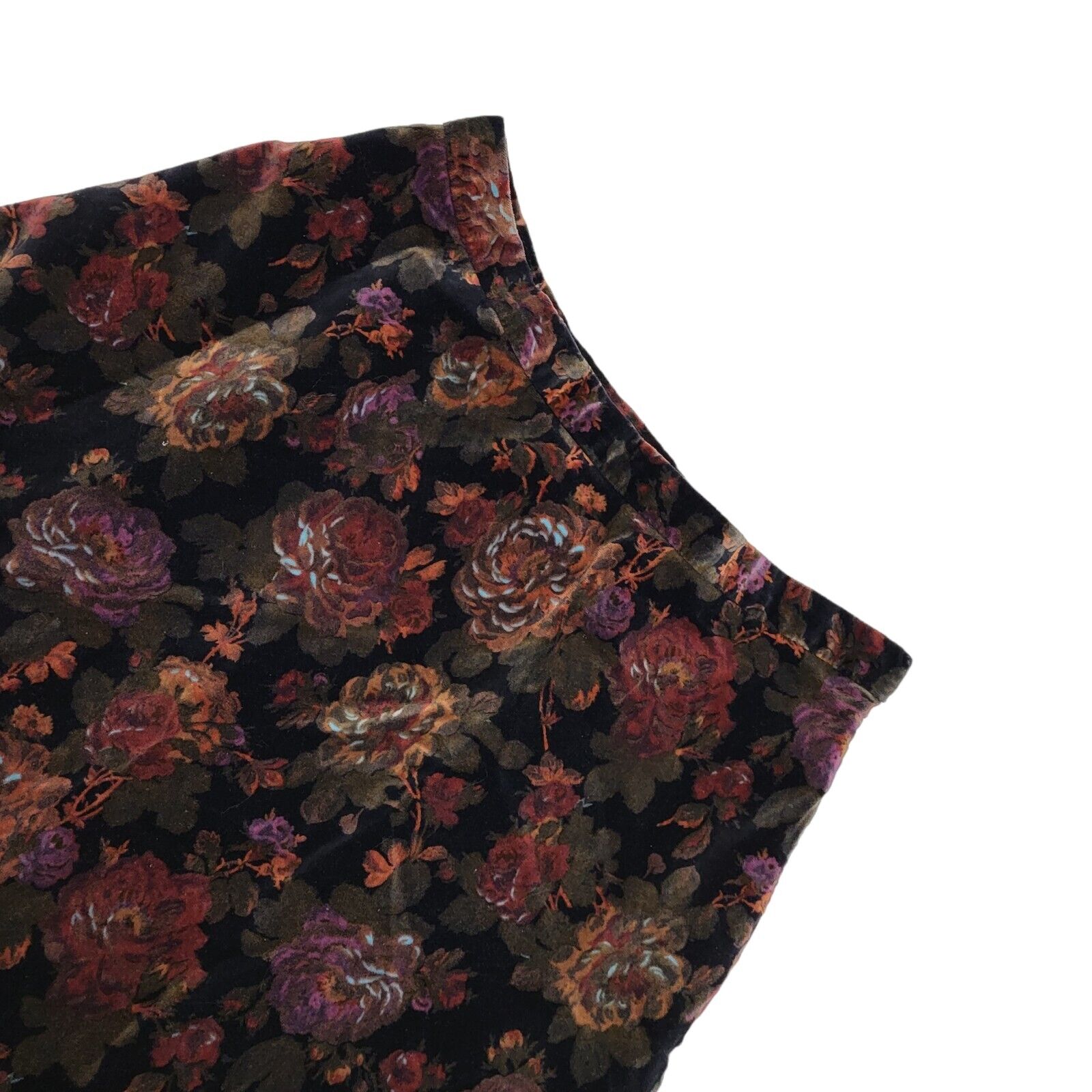 St Michael Vintage 80's Red & Black Velour Floral Skirt Womens UK 12-14