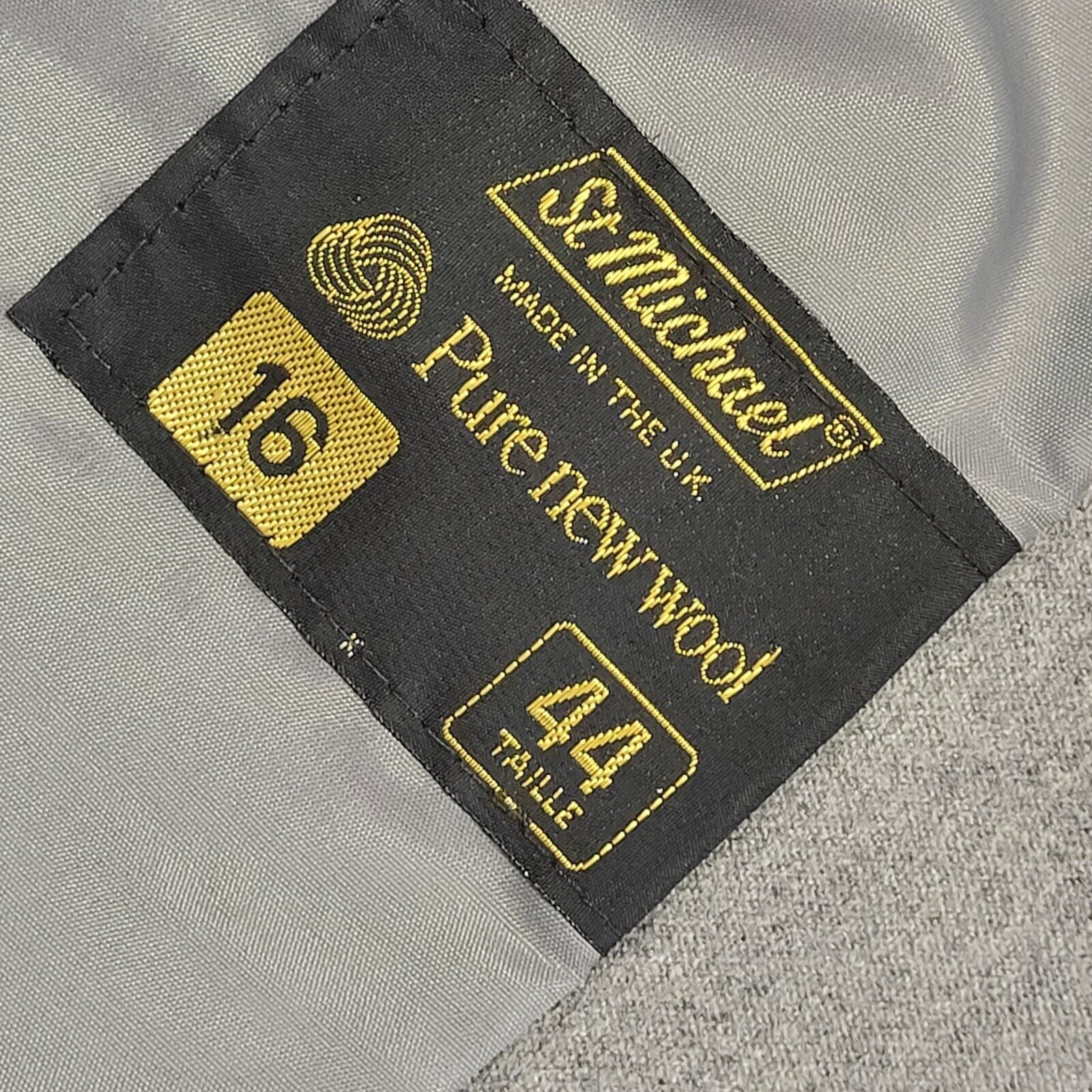 St Michael Vintage 90s Grey Solid Blazer Jacket Womens Size 16