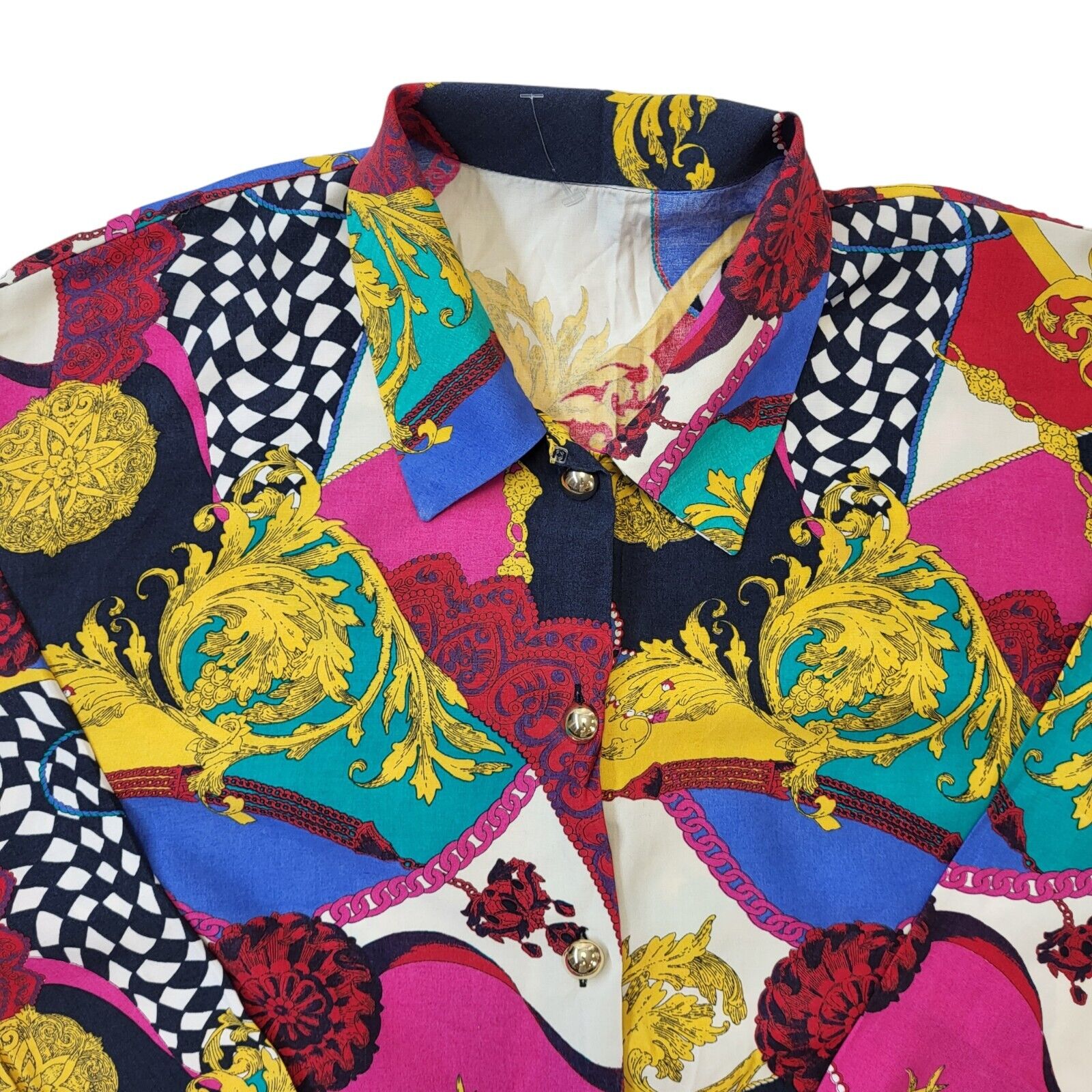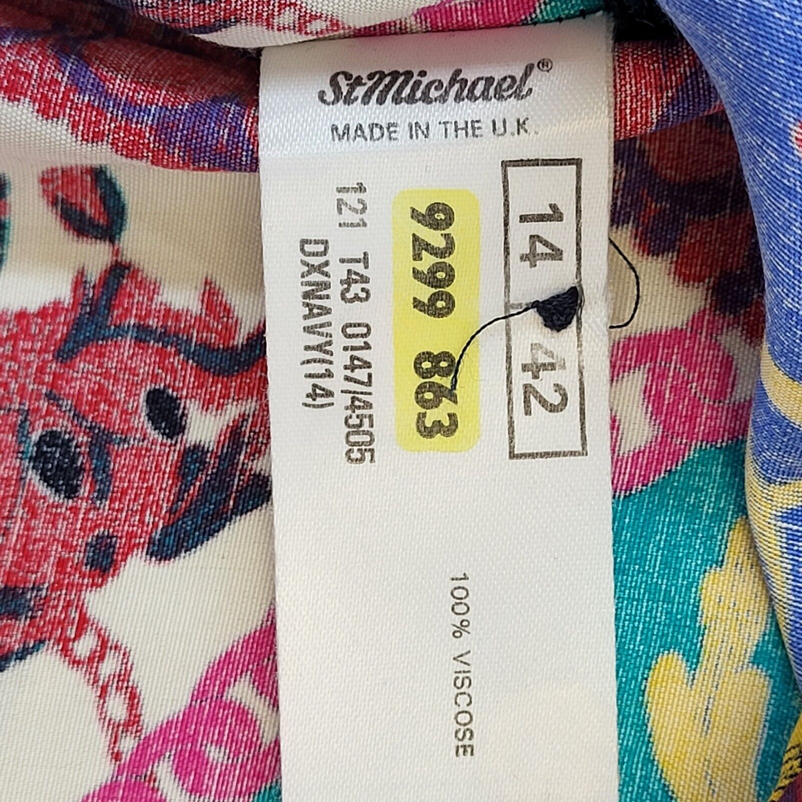 St Michael's 90s Vintage Pink Abstract Long Sleeve Blouse Women's Size 14 Eu 42