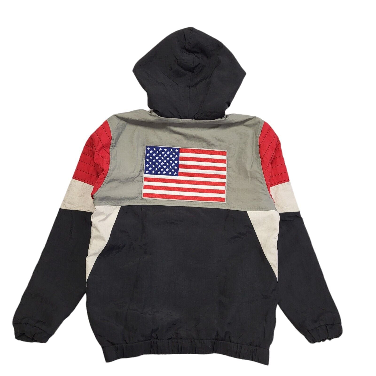 Stall & Dean Vintage 90s Black Red 1/4 Zip Hooded Jacket Uk Men's Size M