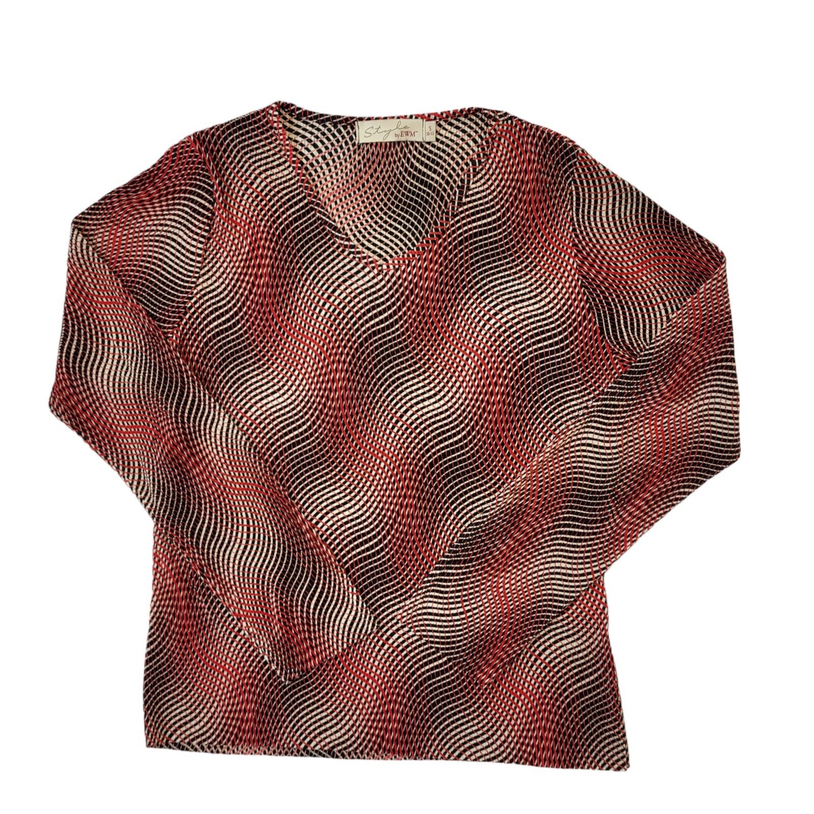 Style 90s Vintage Red Abstract Long Sleeve Top Women's Size S Eu 36
