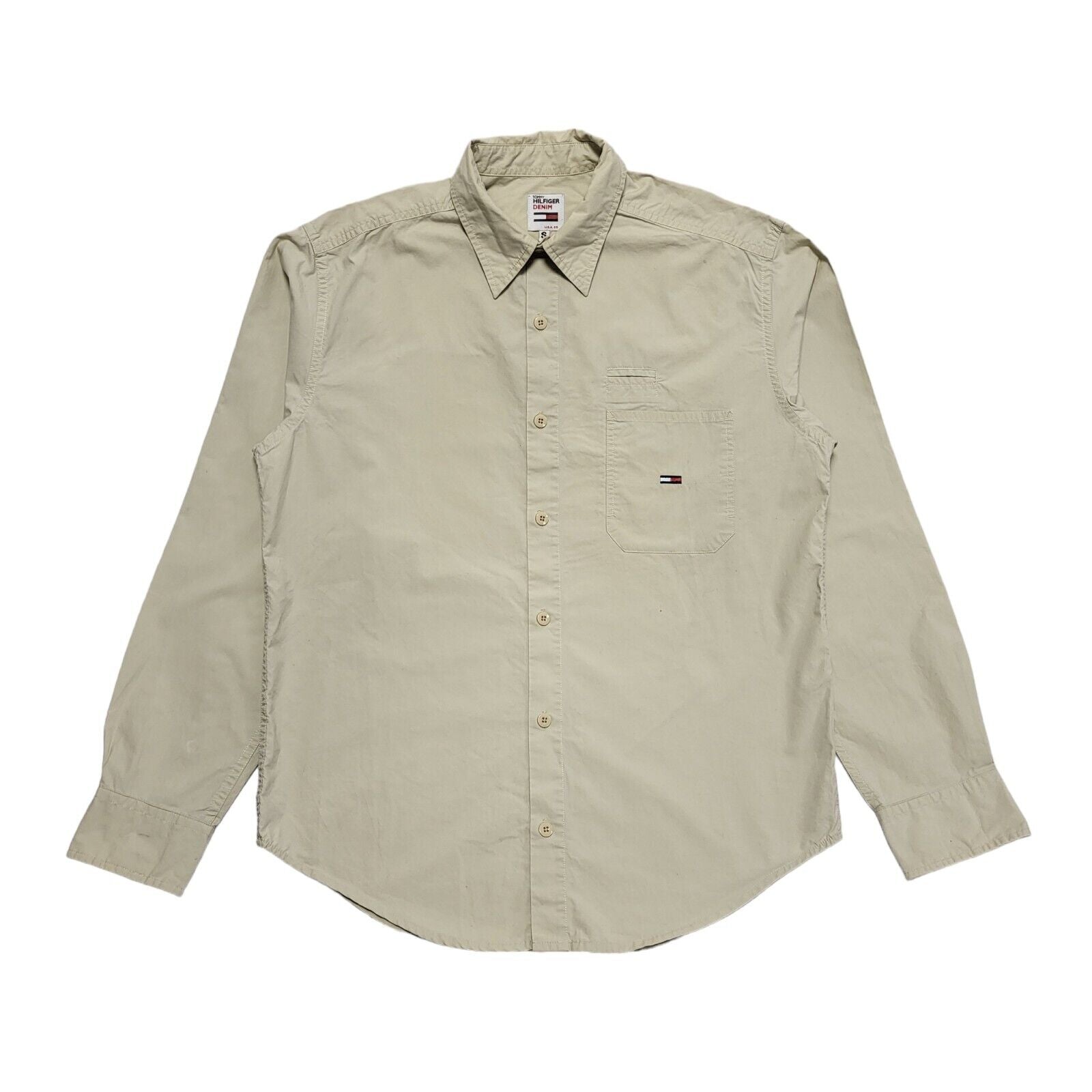 Tommy Hilfiger Vintage 80's Beige Long Sleeve Shirt Men's UK Size S