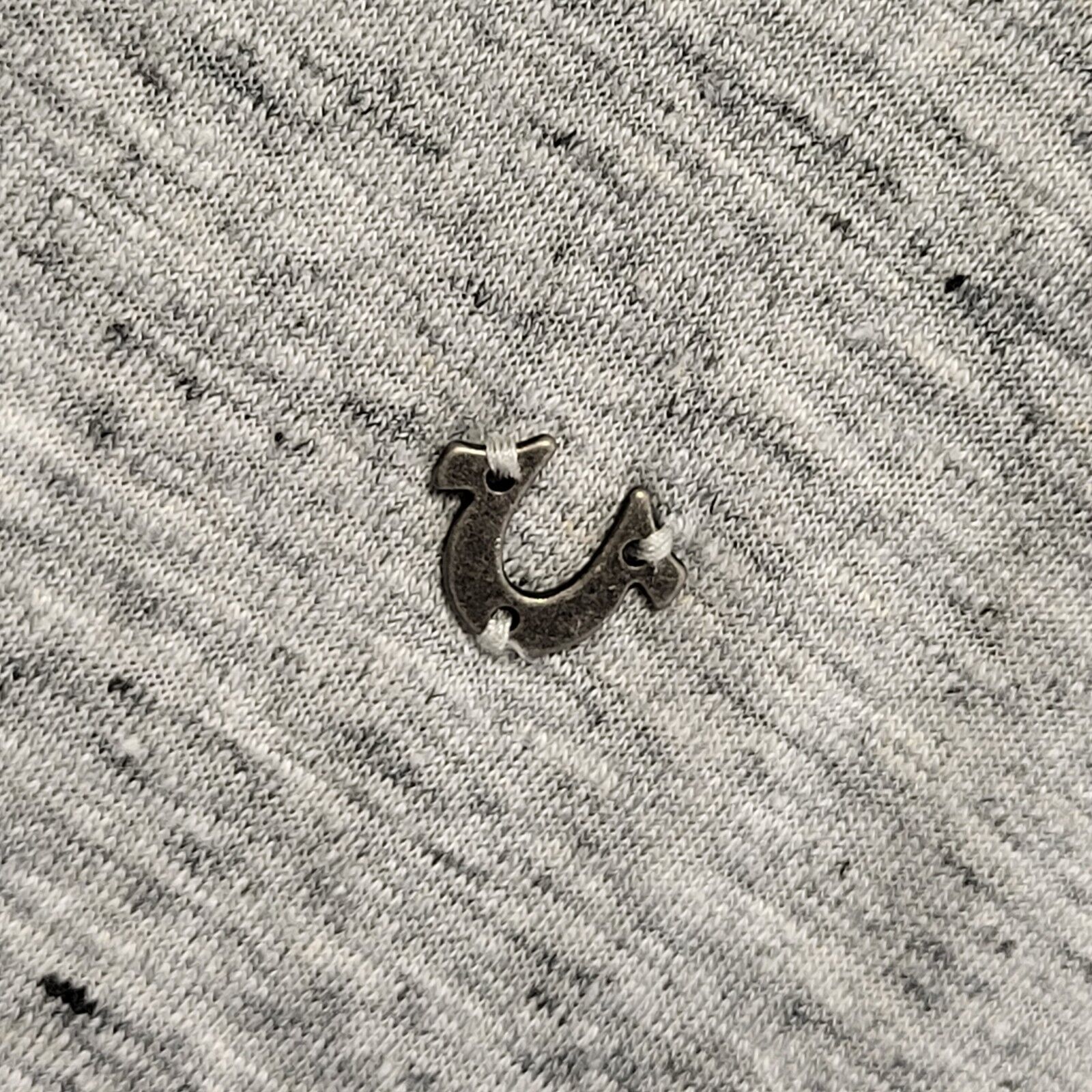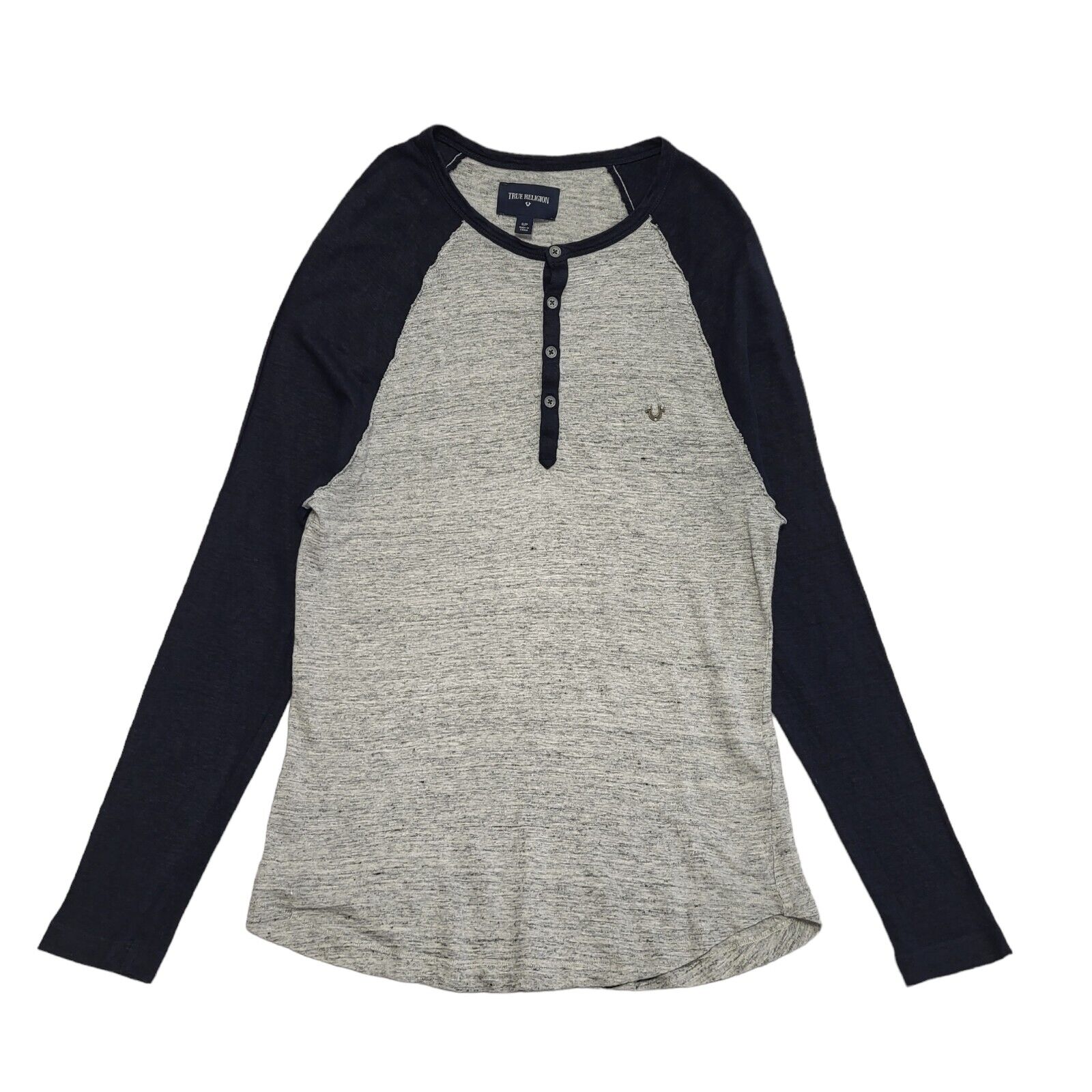 True Religion Henley Vintage 90s Blue & Grey Long Sleeve T-Shirt Mens UK Size S