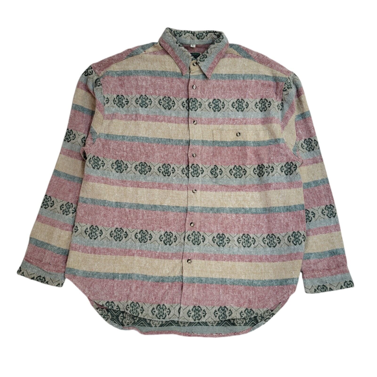 Turbo 90s Pink & Green Geometric Long Sleeve Flannel Shirt Uk Men's Size Large