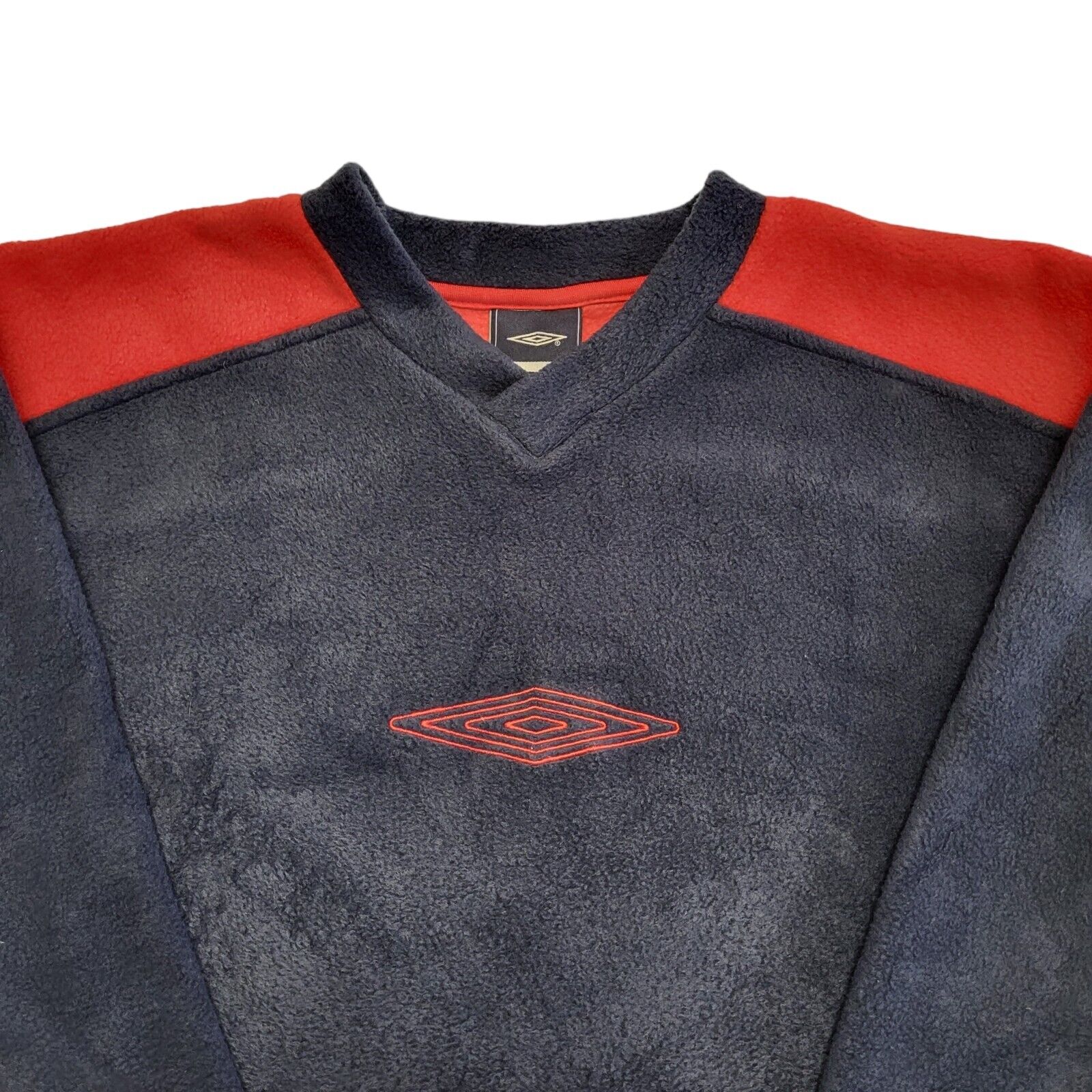 Umbro Y2K Vintage V-Neck Red & Blue Kids XL Fleece.