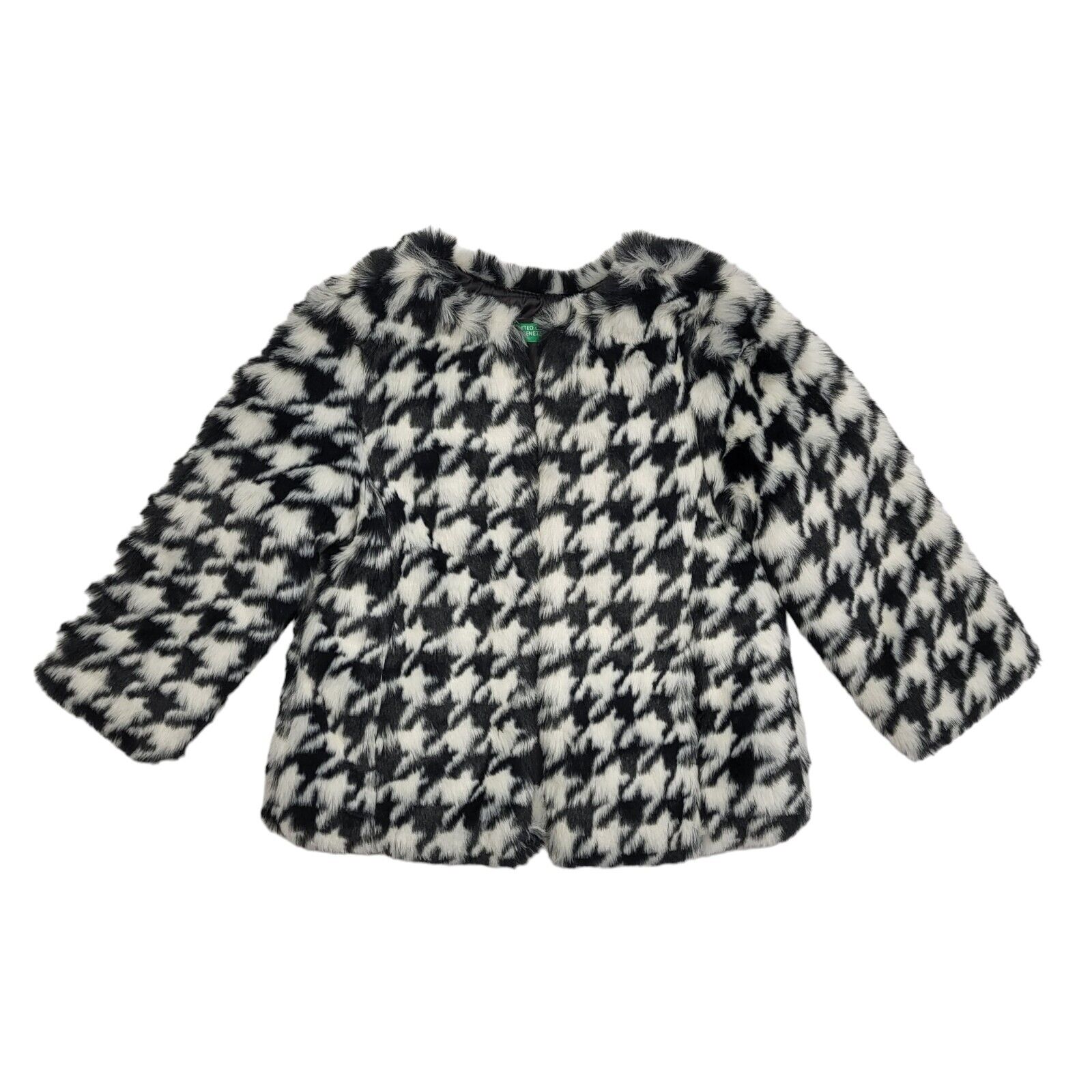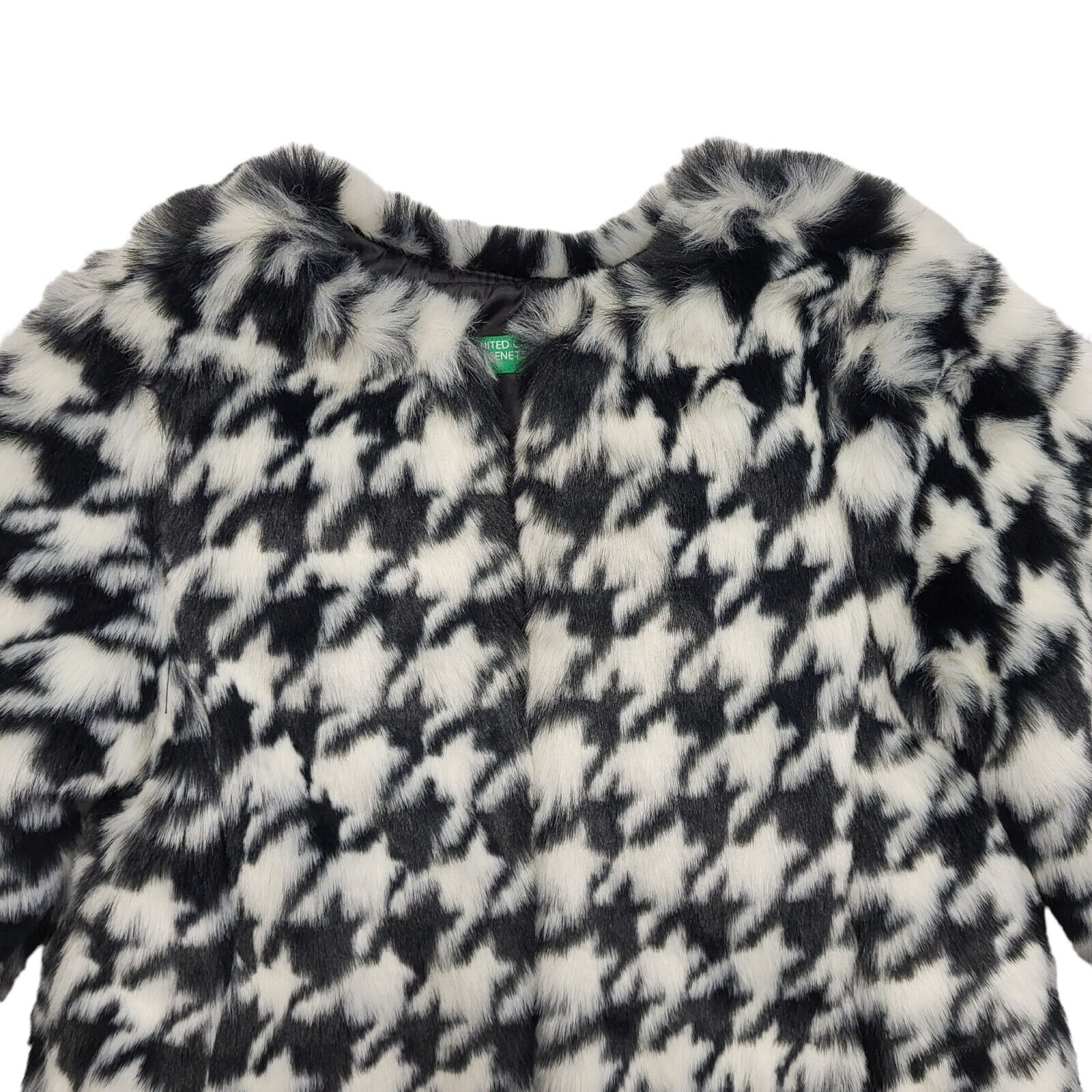 United Colors Of Benetton Black & White Faux Fur Jacket Uk Girl's Age 2.