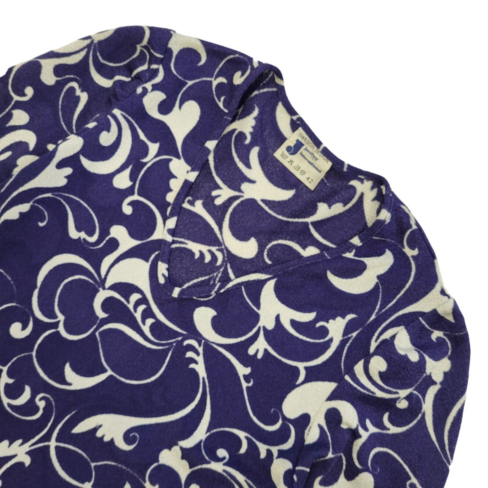 Vintage 60s Purple & White Long Sleeve Abstract Shift Dress Women's Size 14