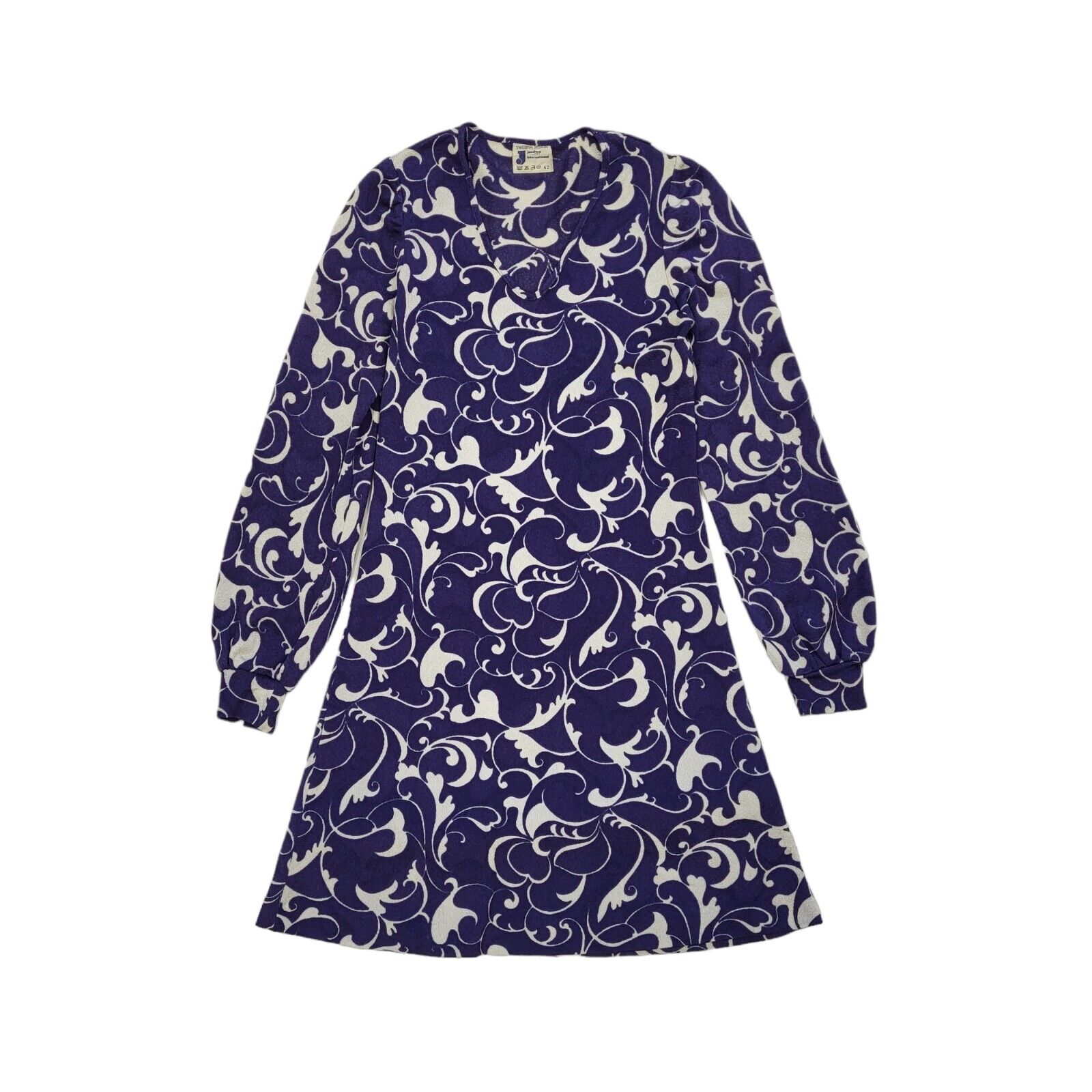 Vintage 60s Purple & White Long Sleeve Abstract Shift Dress Women's Size 14.