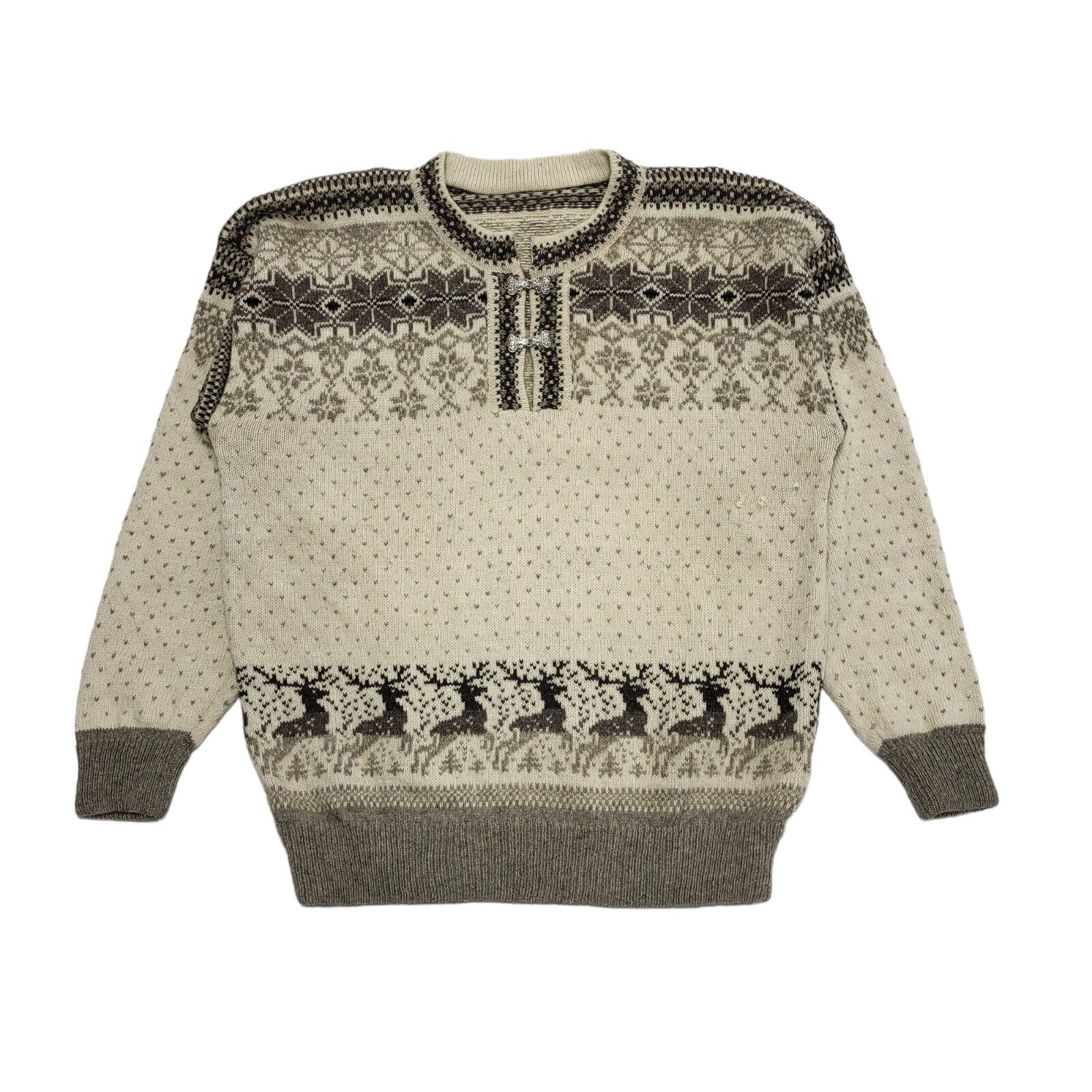 Vintage 80's Beige 1/4 Buckle Reindeer Jumper UK Womens Size XL