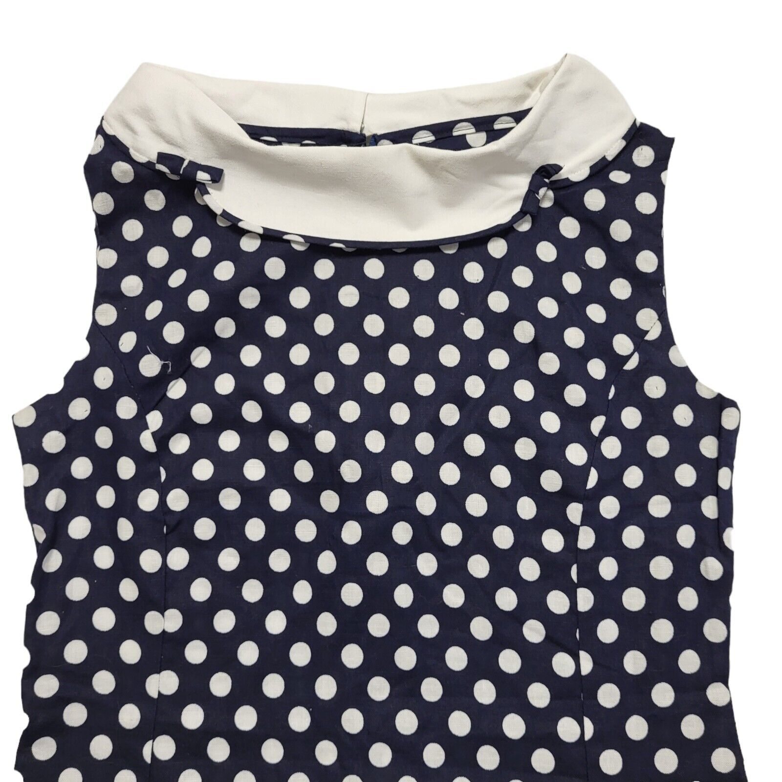 Vintage 80s Blue & White Polka Dot Sleeveless Bodycon Dress Uk Women's Size 12