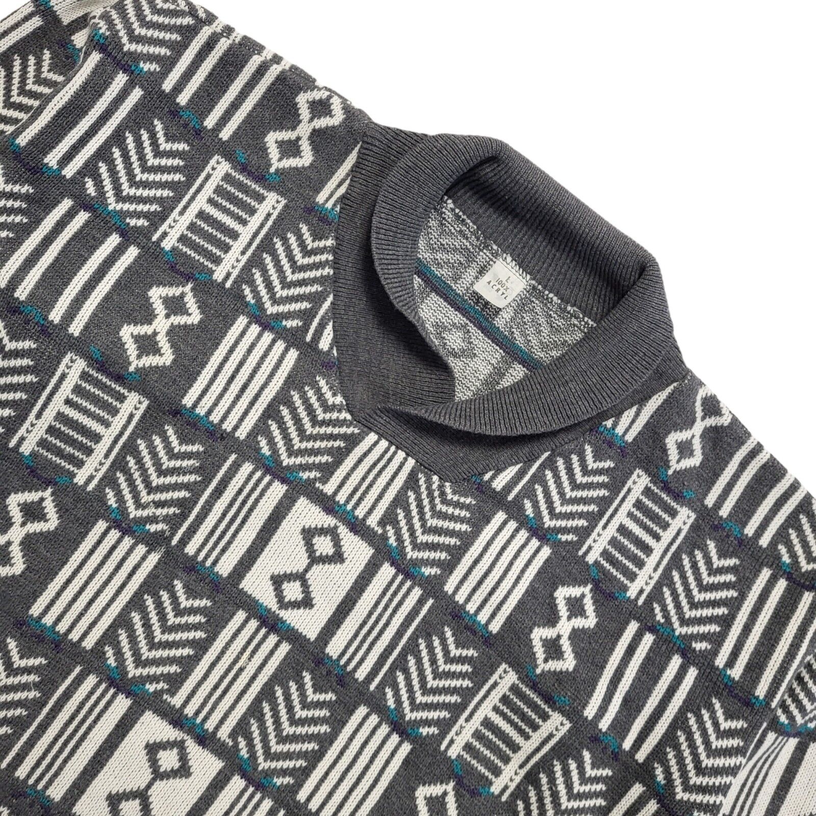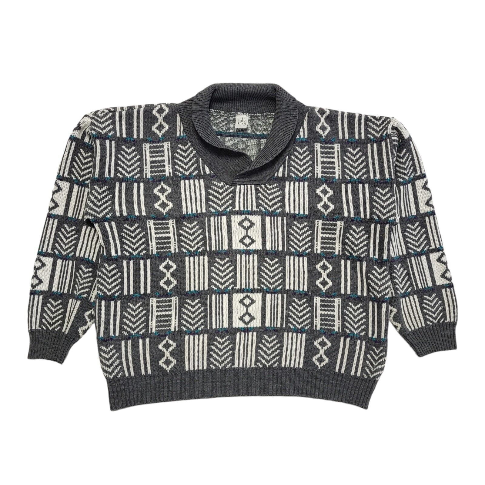 Vintage 80s Grey & White Geometric Collared Jumper Men's UK Large