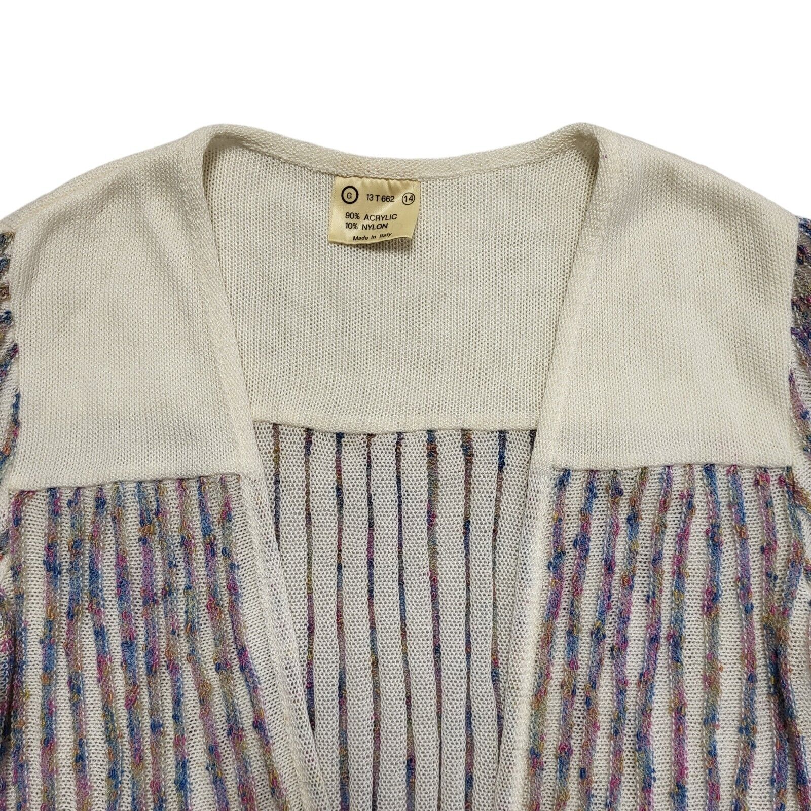 Vintage 80's White & Pink/Blue Striped Open Front Cardigan Womens UK 14