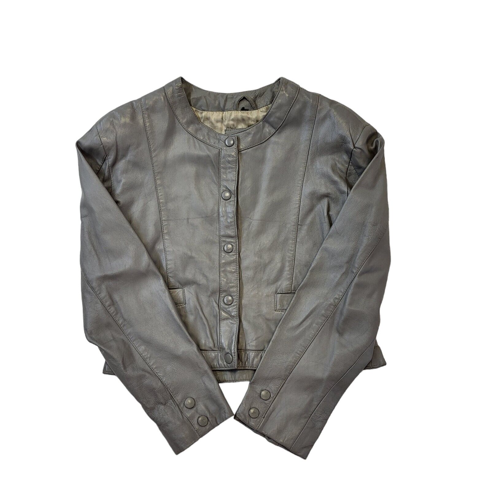 90s Vintage Grey Leather Jacket With Snap Buttons Womens Size Medium.