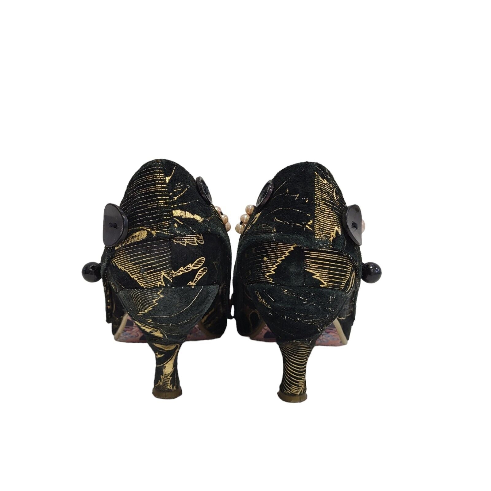 Vintage Black & Gold Slip-on Heels Shoes Uk Women's Size Unknown