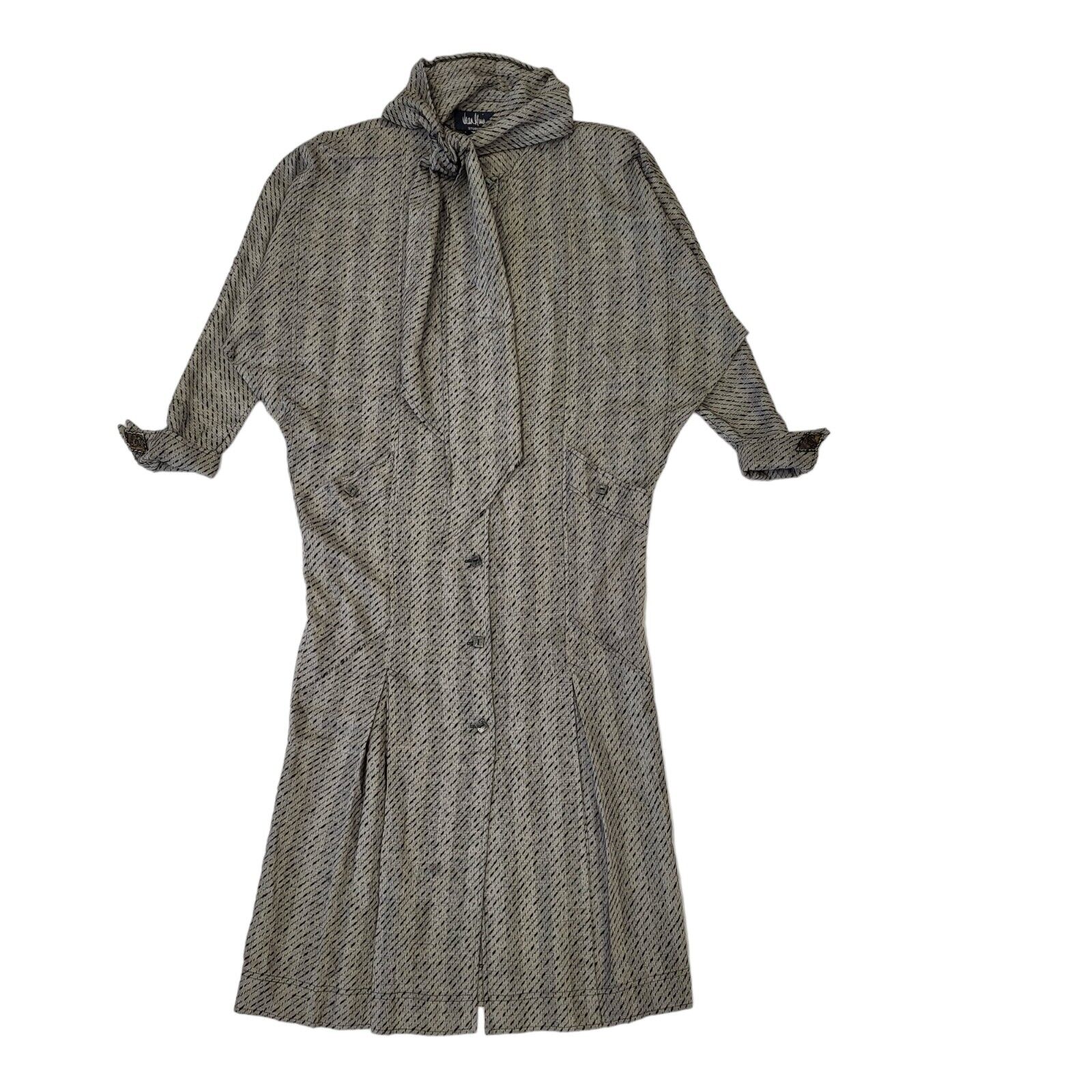 Vintage Jean Wui 70s Grey Wool Long Sleeve Dress Uk Women's Size 14