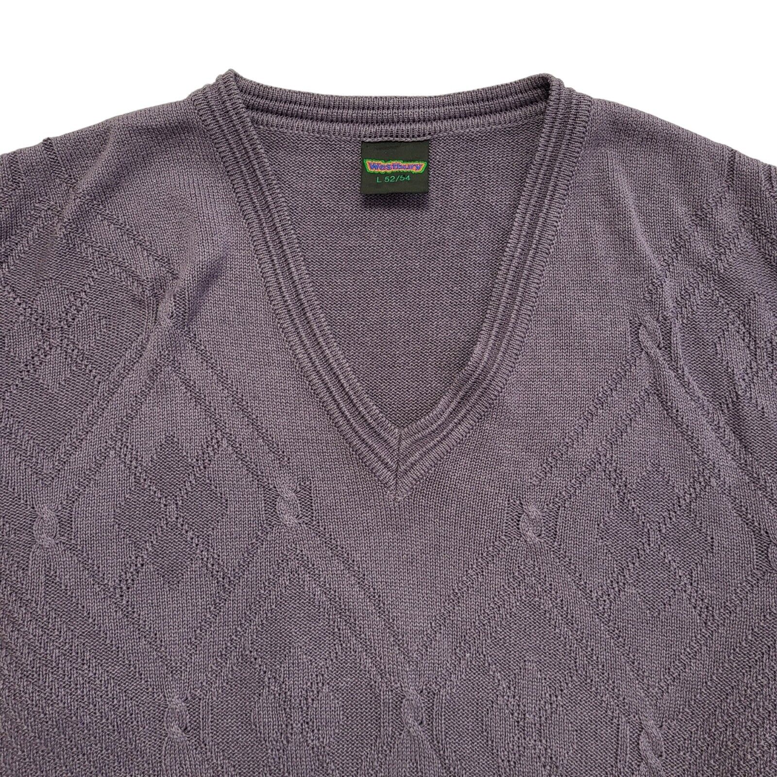 Westbury 80s Vintage Purple V-Neck Jumper Uk Men's Size Large