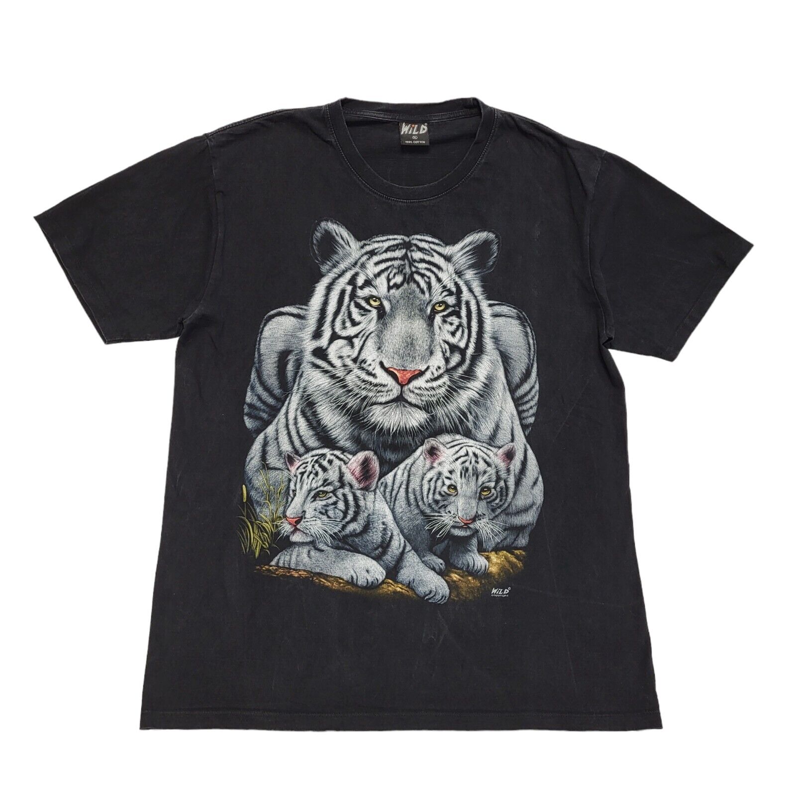 White Tiger Wild Black Vintage 90s Short Sleeve T-Shirt Uk Men's XL
