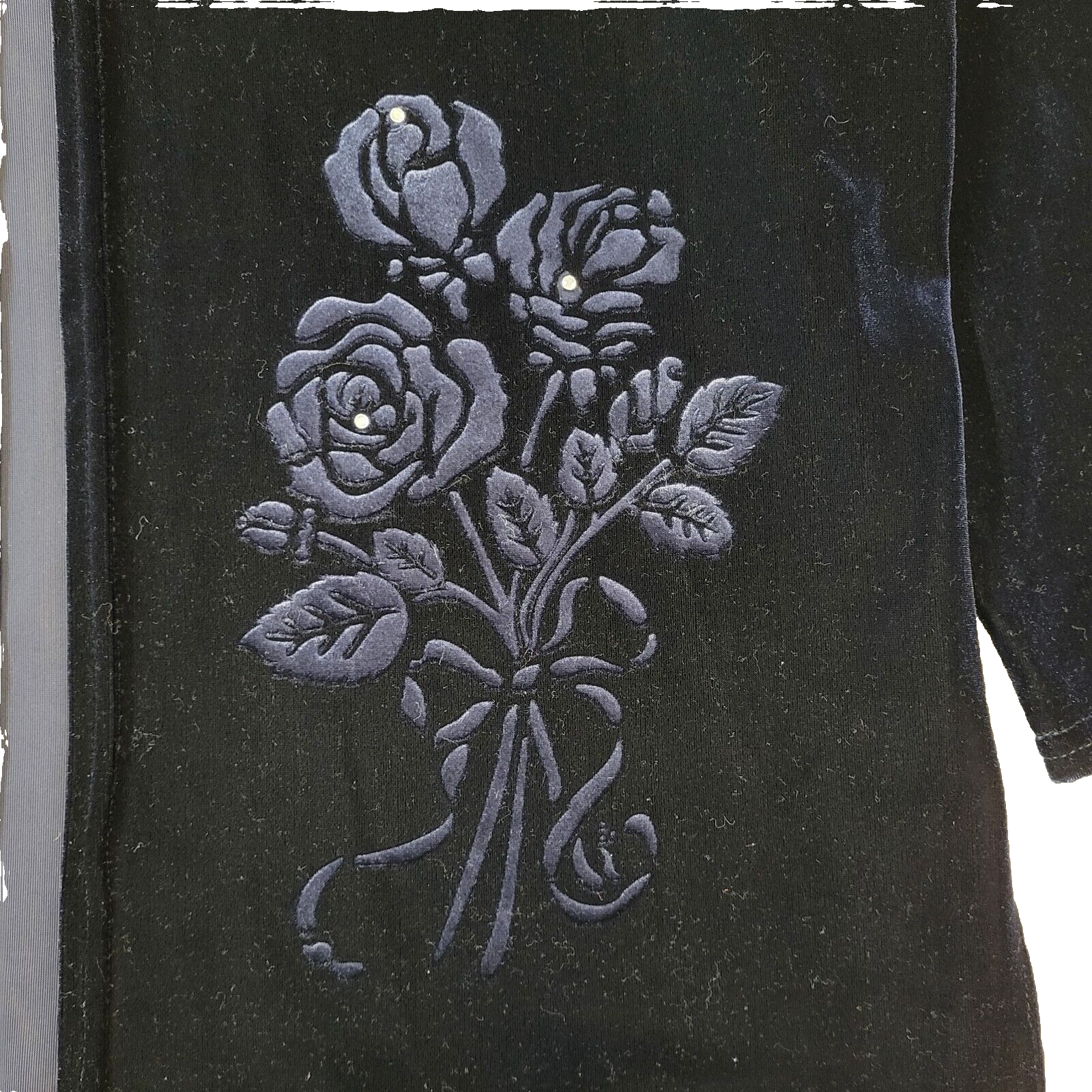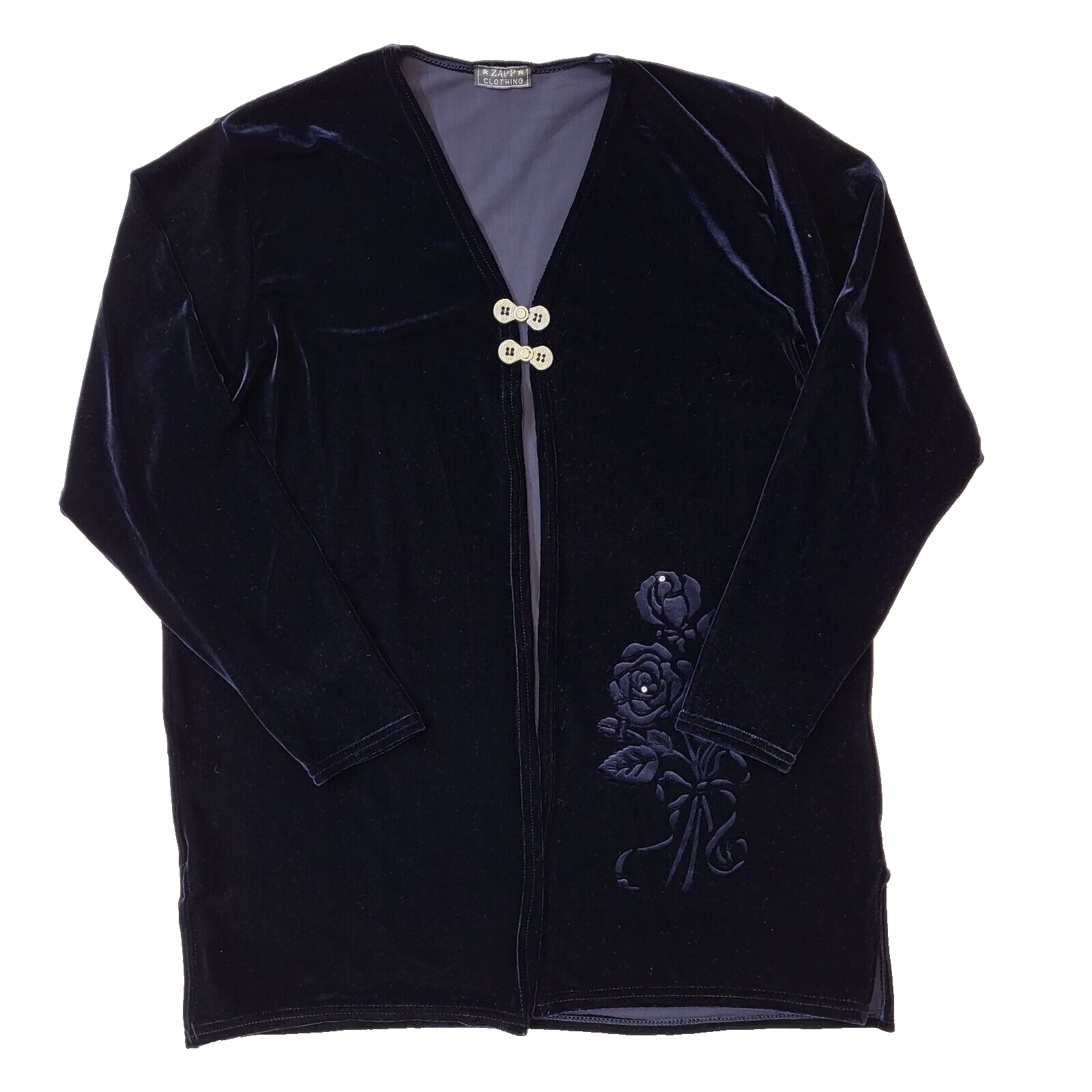 Zapp 90s Vintage Navy Blue Velvet Long Sleeve Top Women's Size L/XL Eu 40-42