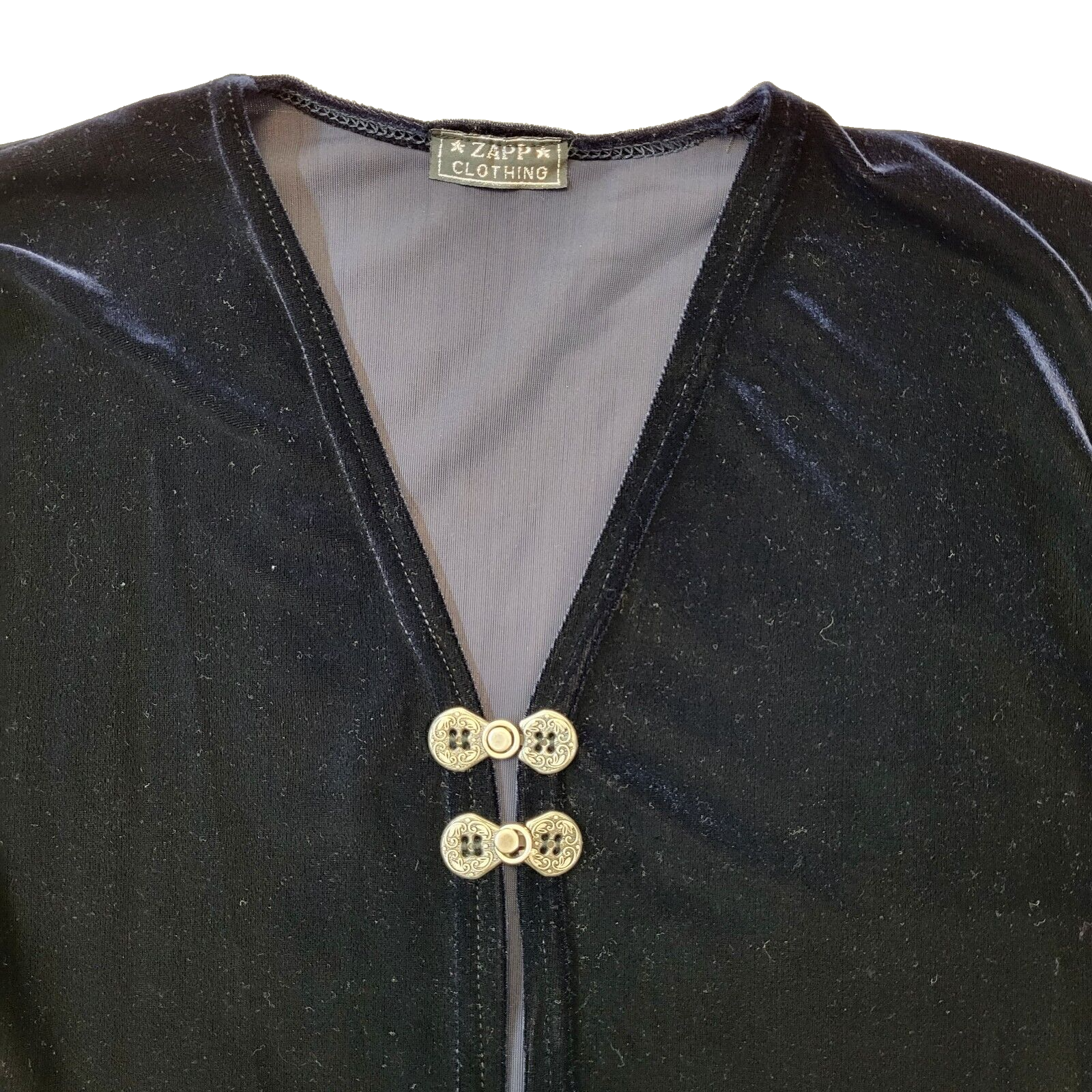 Zapp 90s Vintage Navy Blue Velvet Long Sleeve Top Women's Size L/XL Eu 40-42.