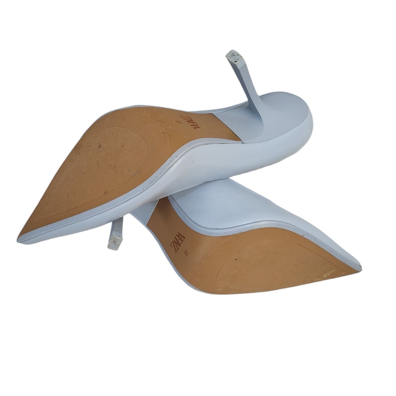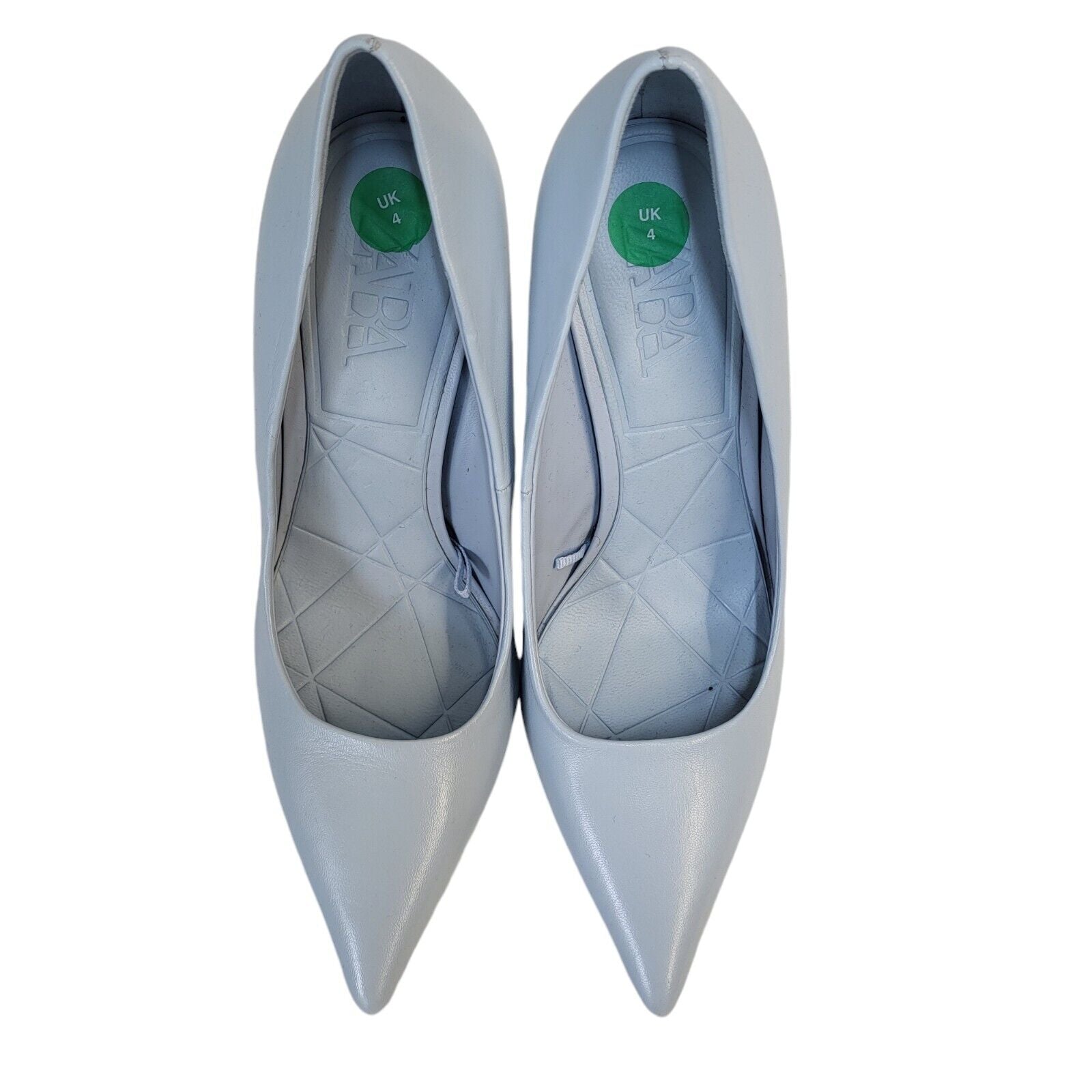 Zara Light Blue Slip-On Faux Leather Casual Heel Shoes Uk Women's Size 4